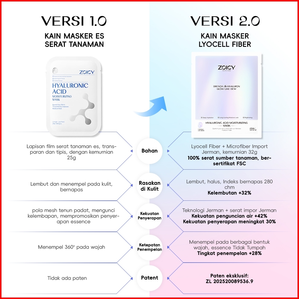Zoicy Hyaluronic Acid Moisturizing Mask 5 Pieces Masker Wajah Melembabkan Mencerahkan Anti - Aging Sheet Facial Masker N
