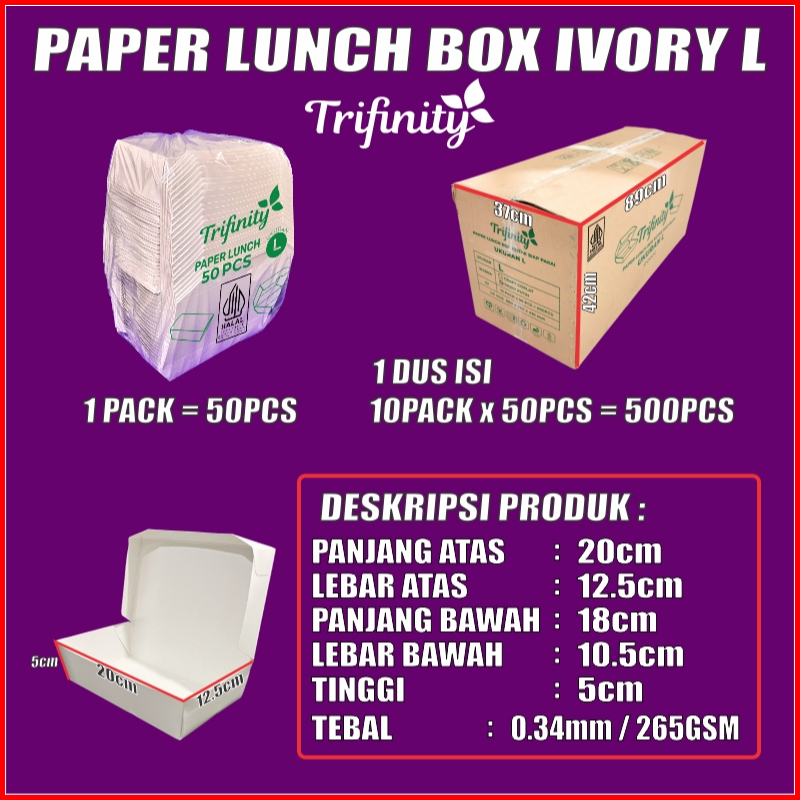 Paper Lunch Box Food Tray Kotak Makan Kertas Tebal 28gr Halal S M L Ivory Putih Kraft Coklat Dus Jsk