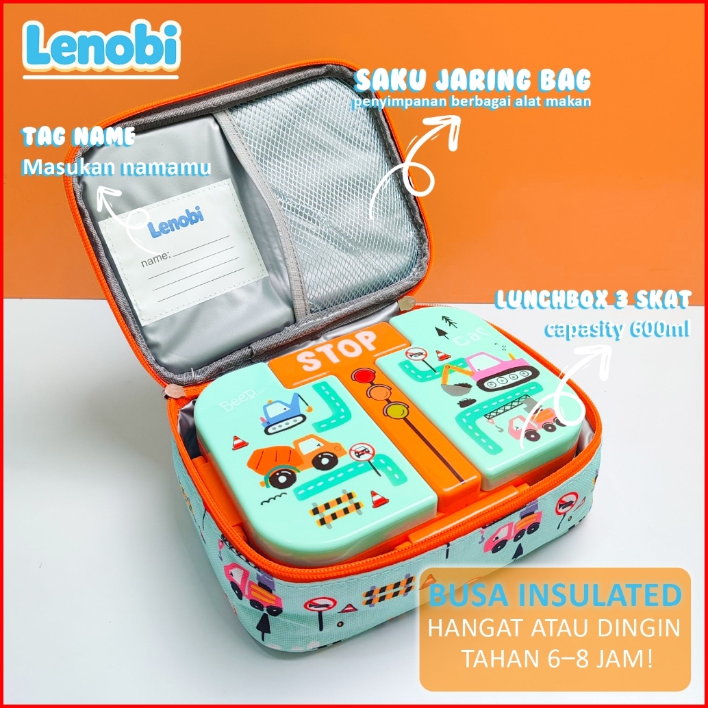 Wng - Lenobi - Lunch Box Anak 3 Sekat Lucu Sendok - Tempat Bekal Sekolah Anti Bocor