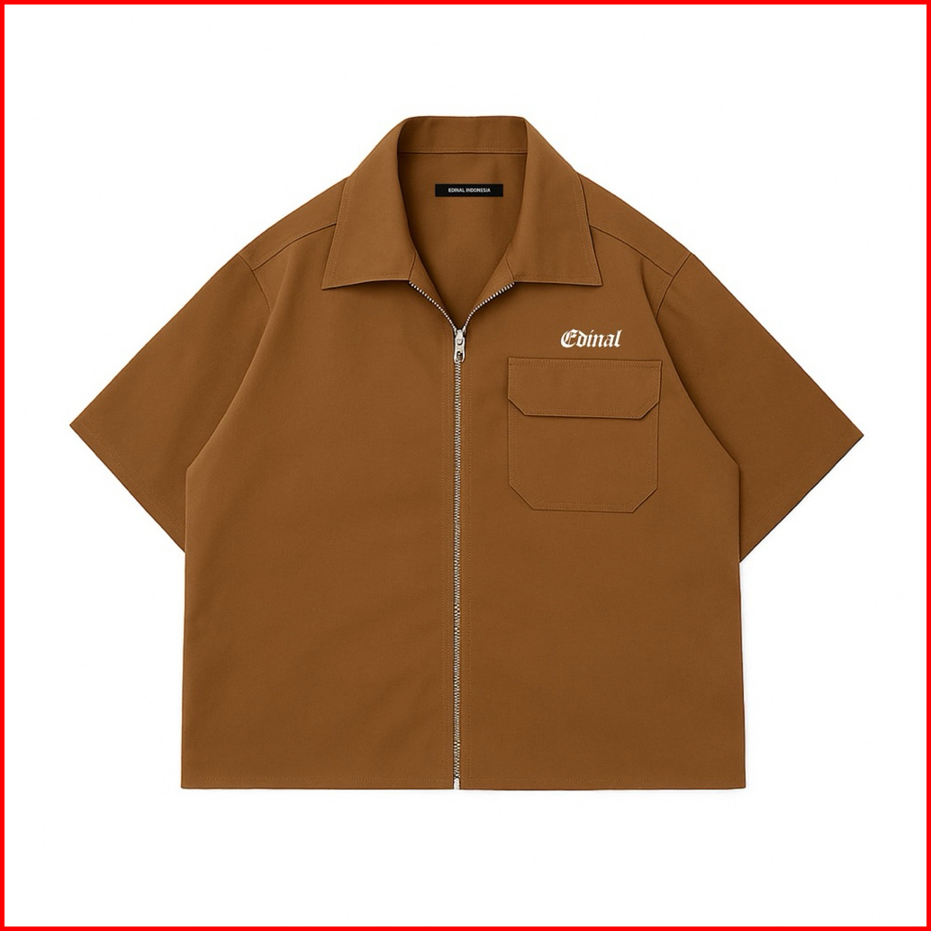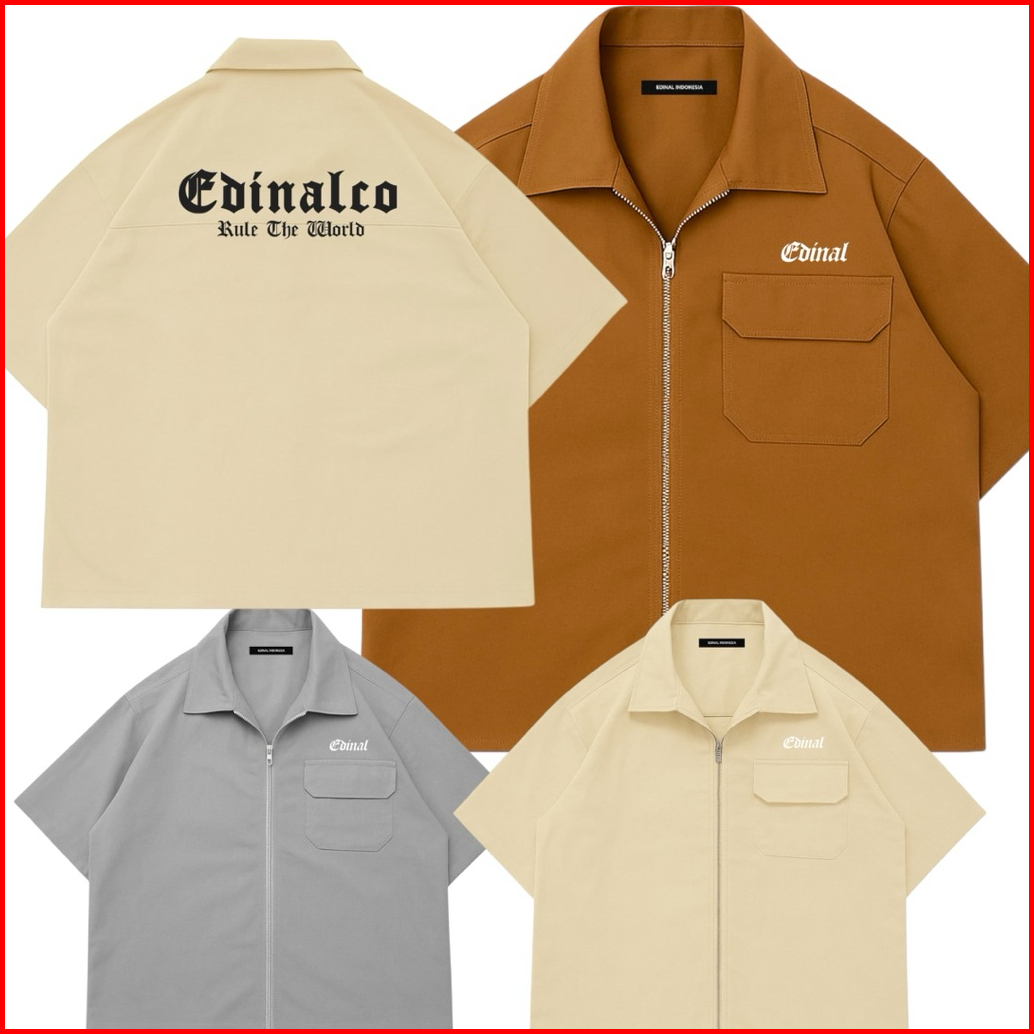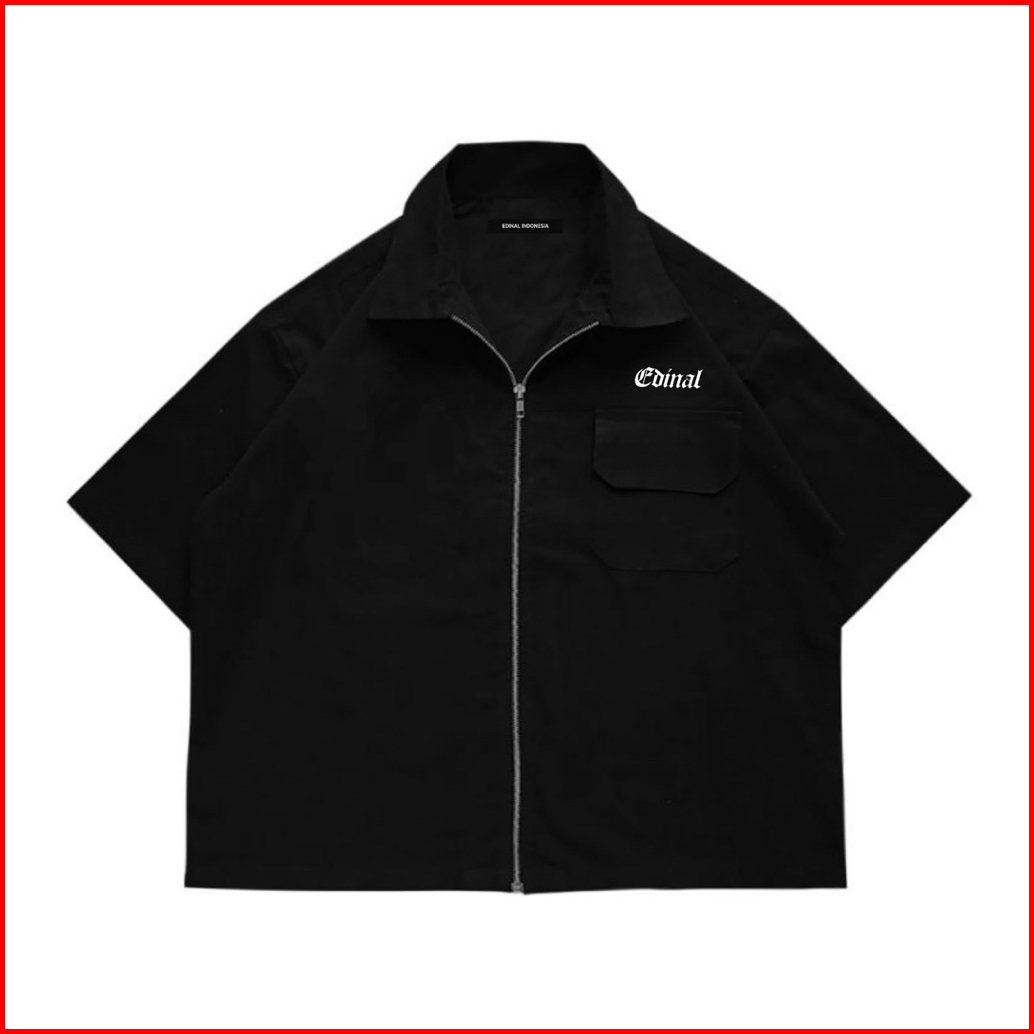 Edinal Kemeja Workshiet Ziper Black Boxy Parian Warna