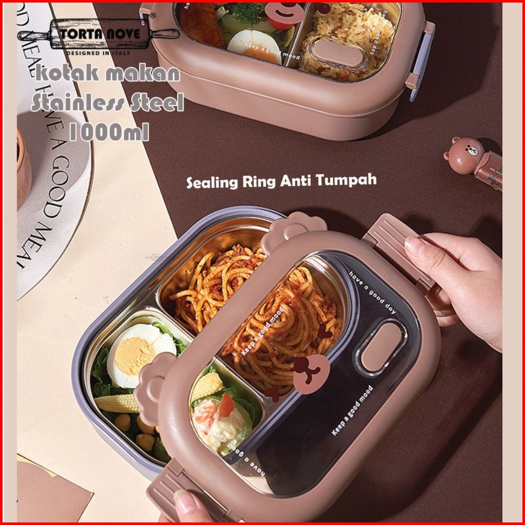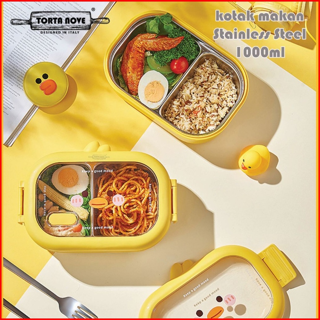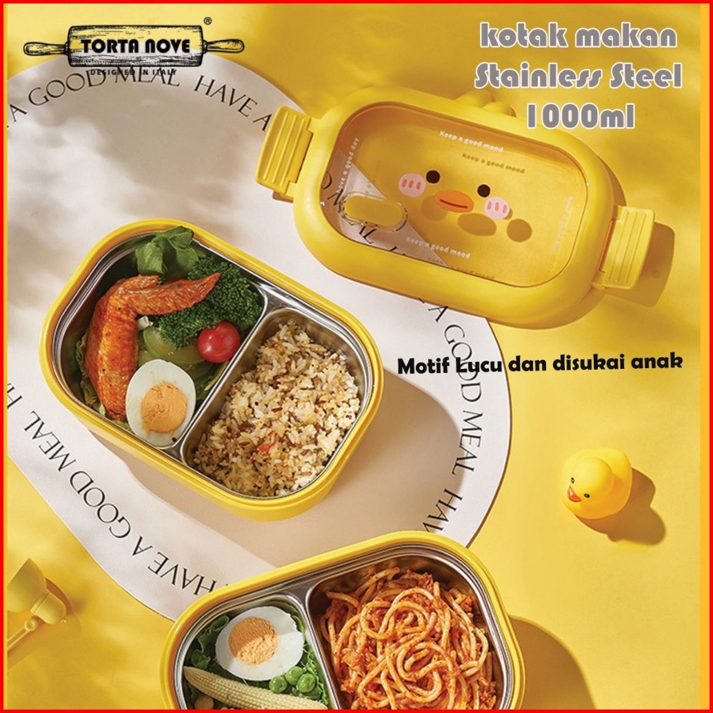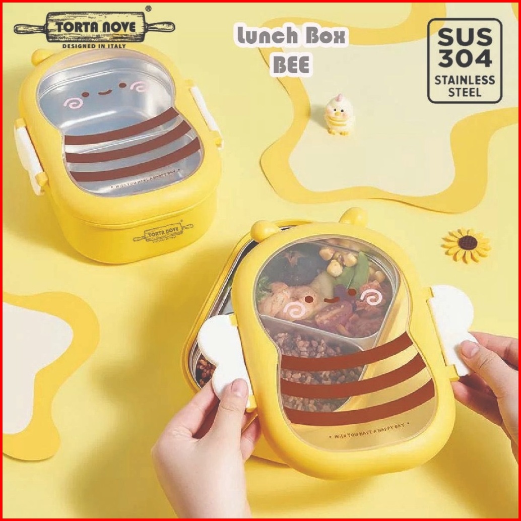 Kotak Makan Lunch Box Anak Stainless Sus 2 Sekat Tempat Bekal Lebah Sally Bebek Brown