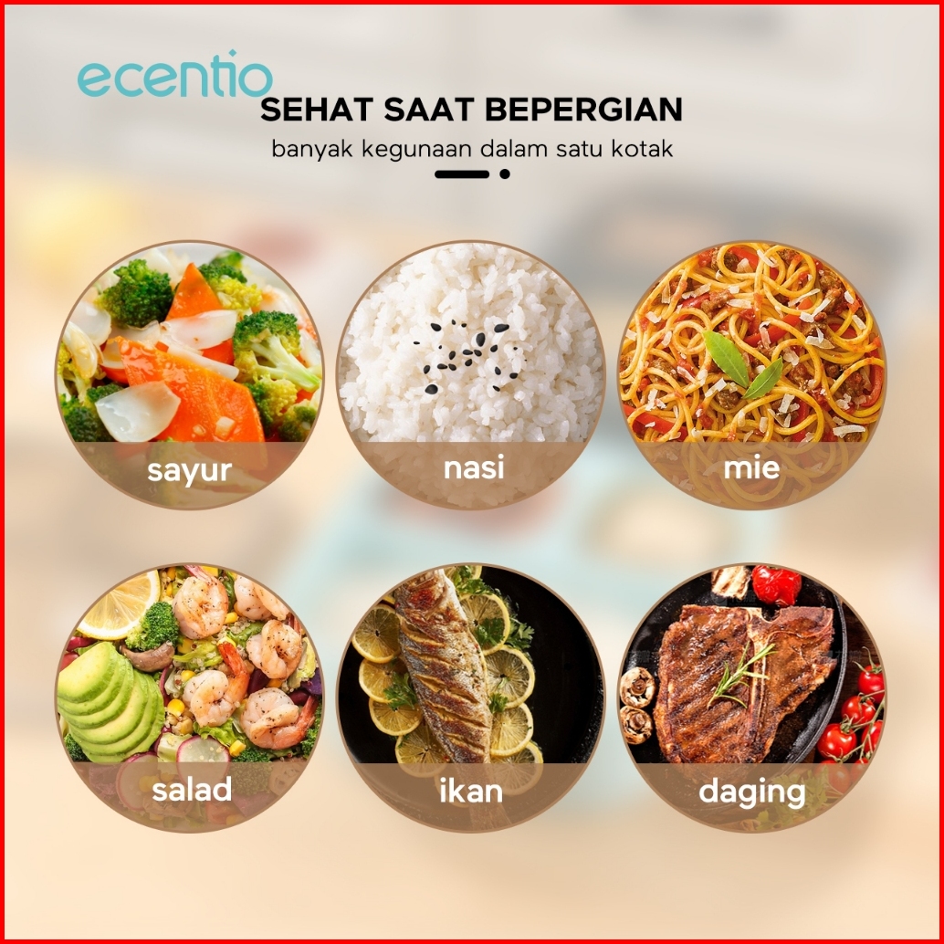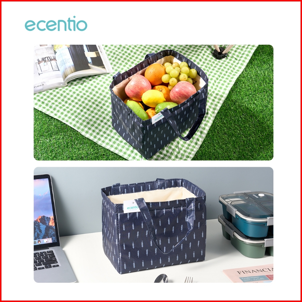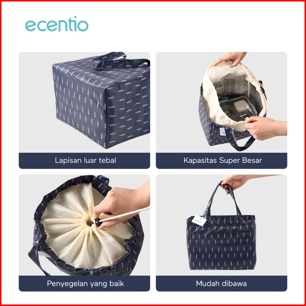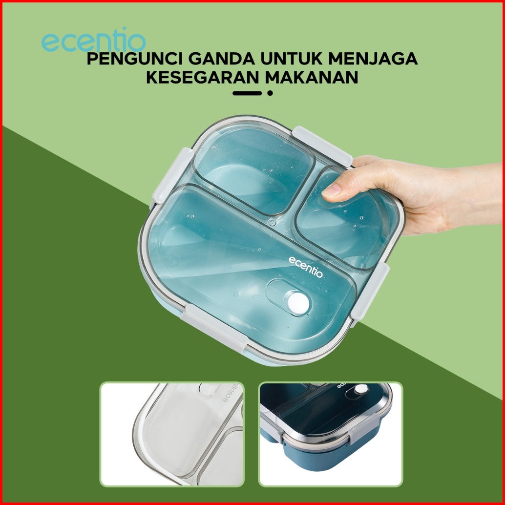Grosirecentio Kotak Makan Anti Tumpah 3 Grid 1100ml Set Ecentio Tas Bekal Alumunium Foil Lunch Bag Cooler Lunch Bag Wate
