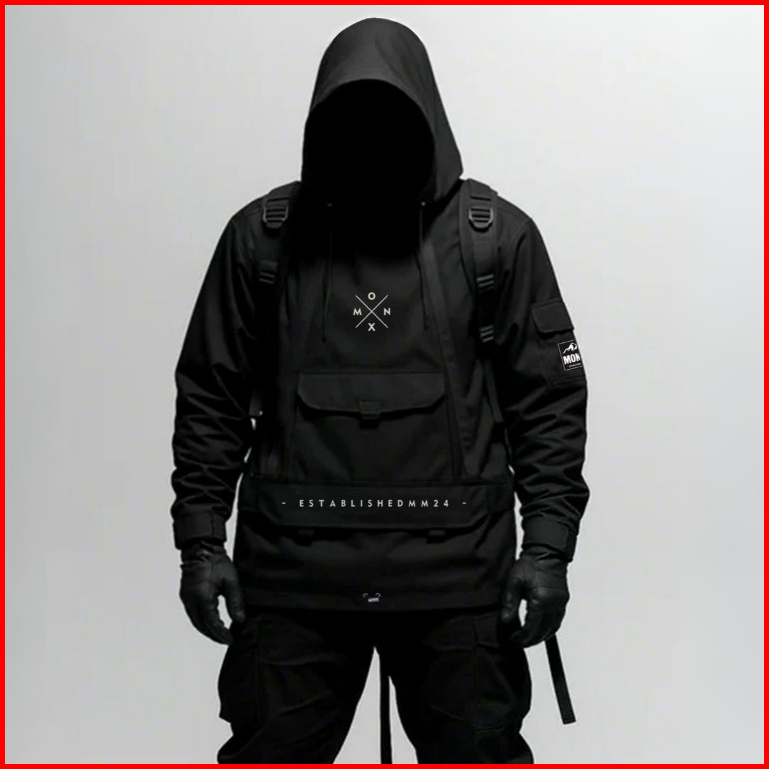 Montheight - Terbaru Jaket Parasut Cagoule Pria Premium Black Taslan Anti Air Waterproof Doble Zipper Pccket Besar Model