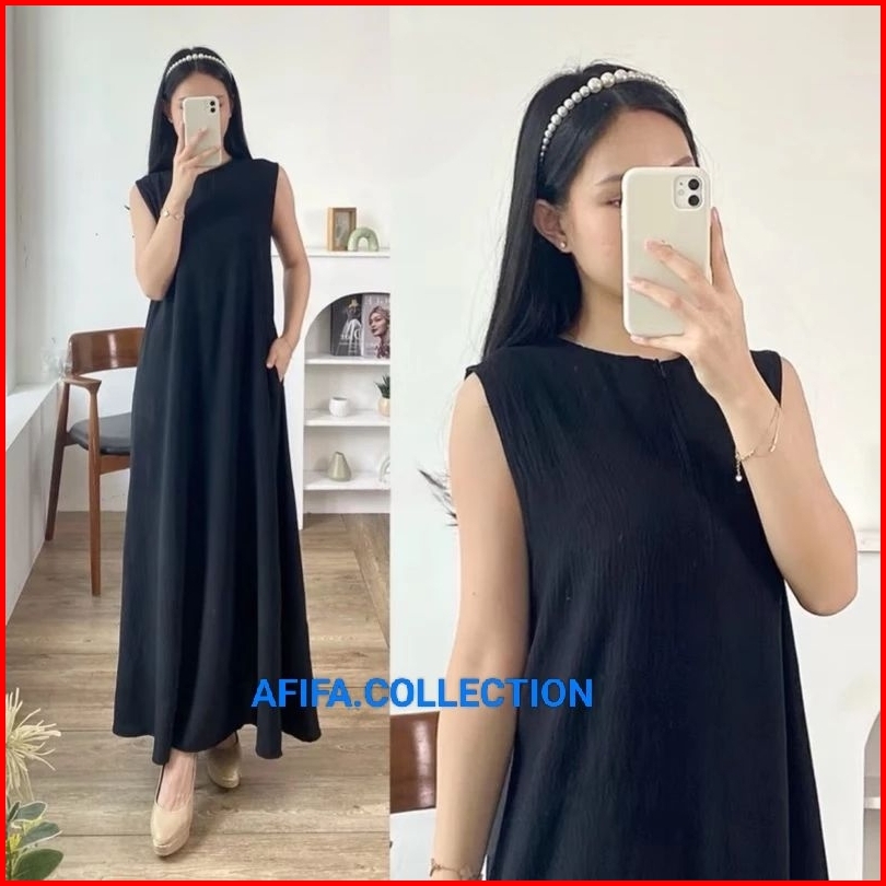 Inner Dress Busui Tanpa Lengan Singlet Crinkle Premium Dalaman Inner Gamis Muslim Iner Dres Kutungan