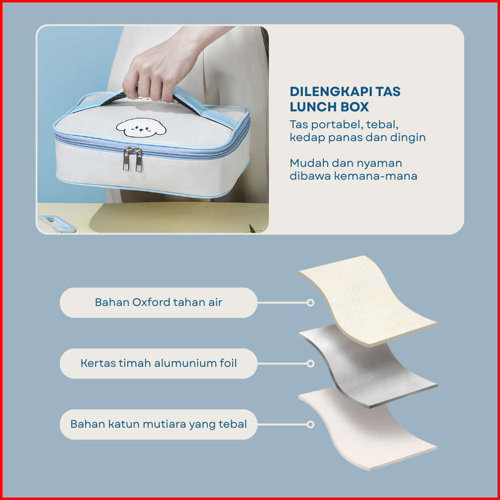 Free Bag Sunland Lunch Box 1500ml Kotak Makan Stainless Steel Sus 304 Tempat Bekal Anti Tumpah