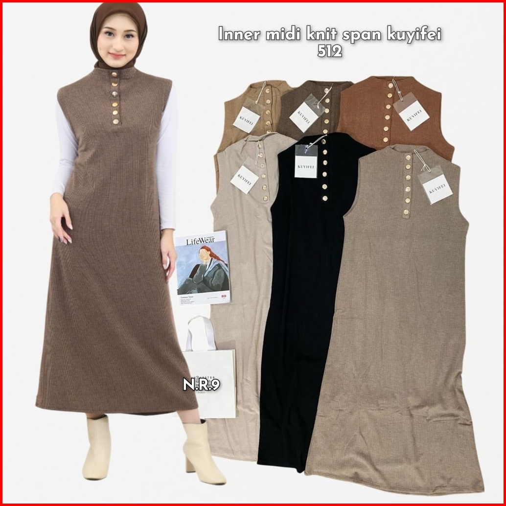 Iner Knit Import Kuyifei Gamis Midi Tanpa Lengan Iner Kutung
