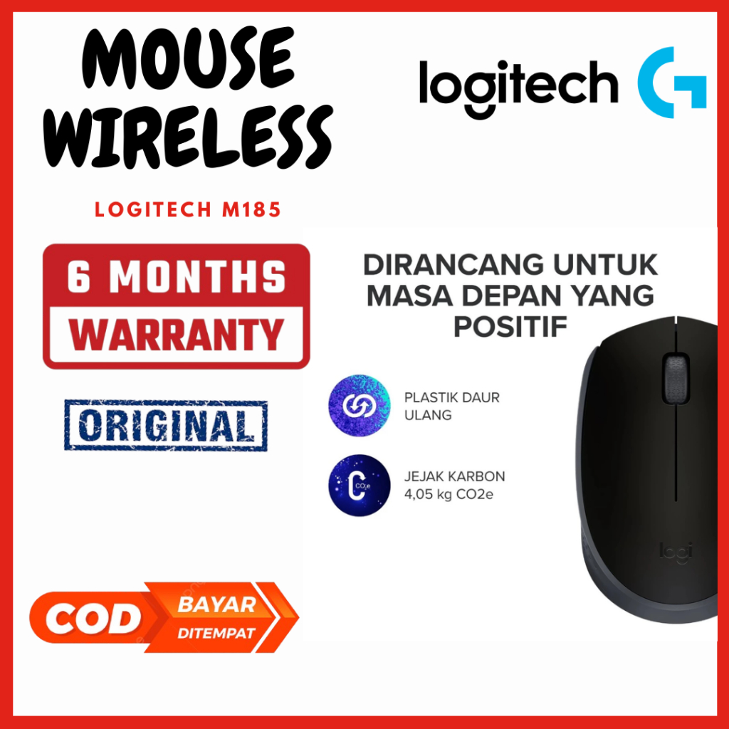 [ Garansi 6 Bulan Tukar Baru ] Mouse Wireless Logitech M185 0riginal 2.4 GHz 10 m
