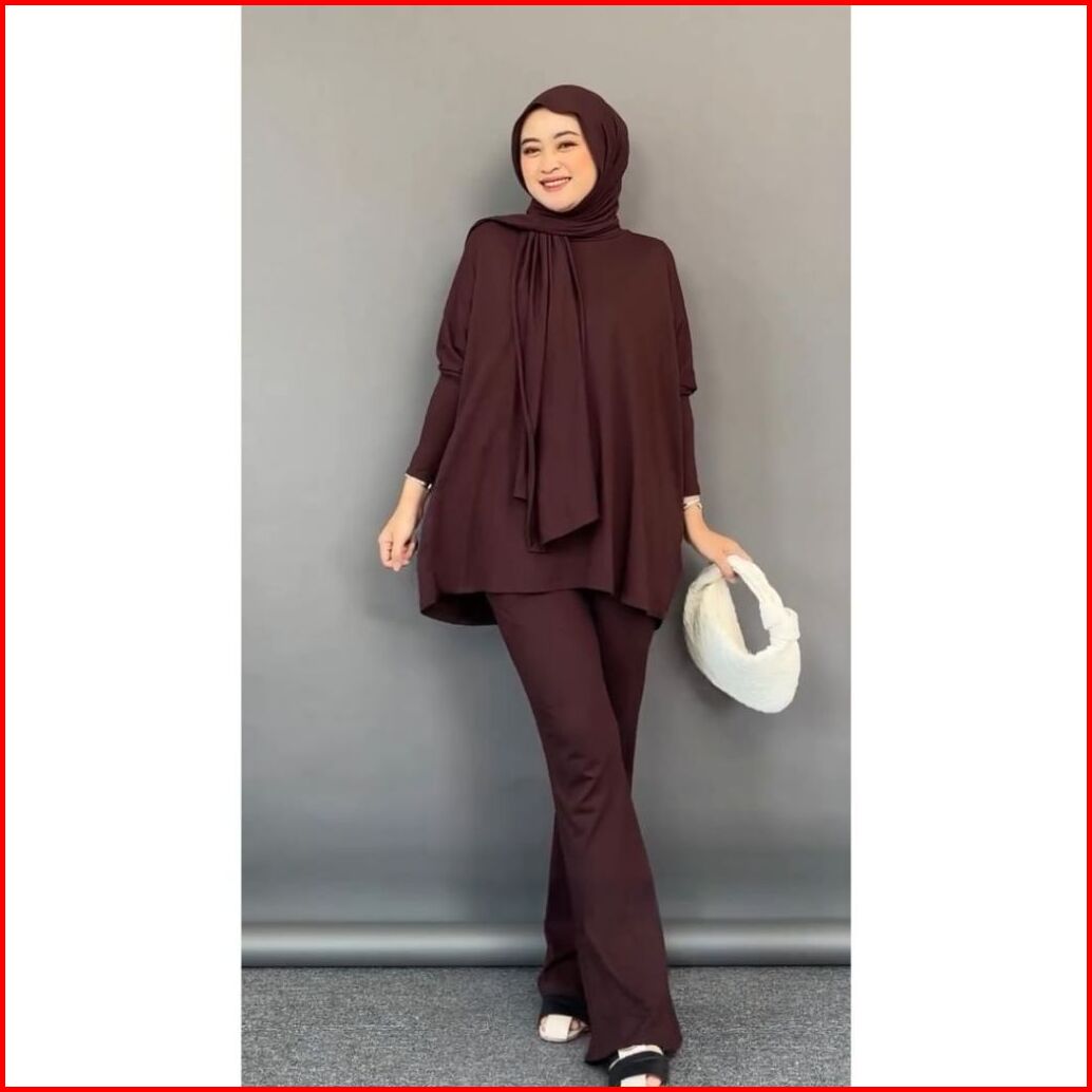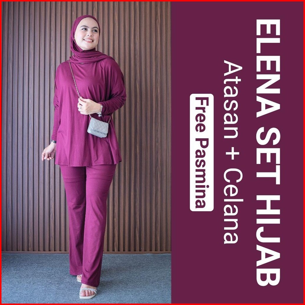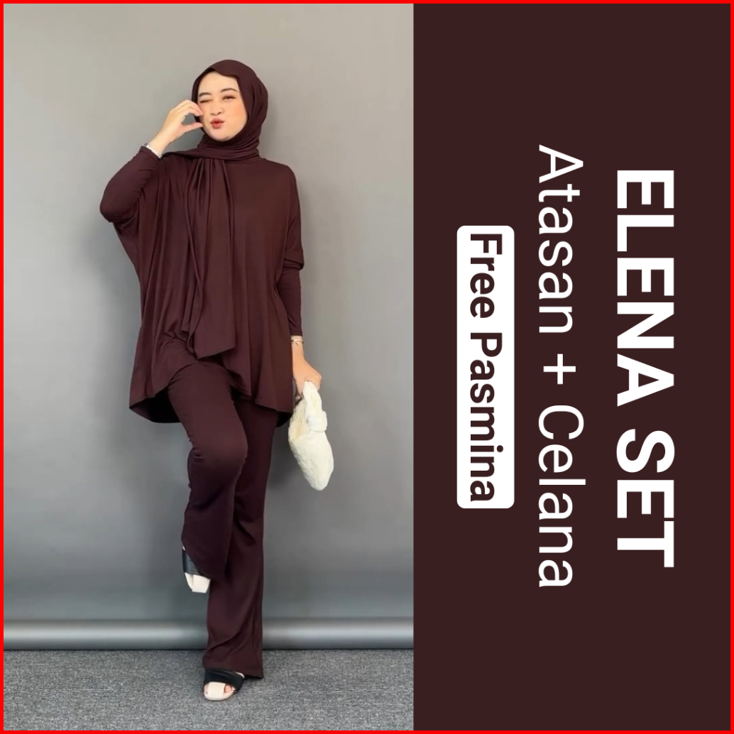 Clotiva Elena Set Atasan Celana Free Pasmina Bahan Rayon Premium Tebal Adem Nyaman