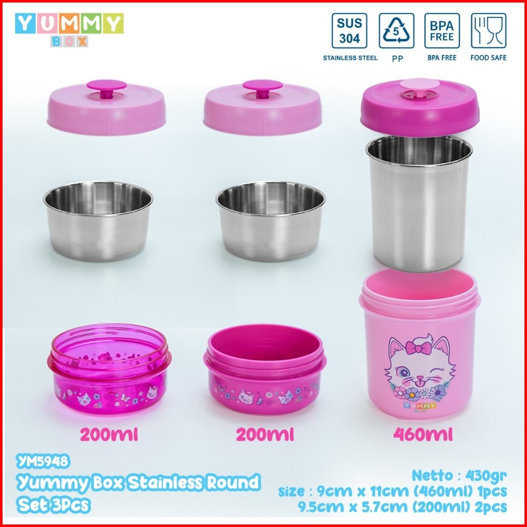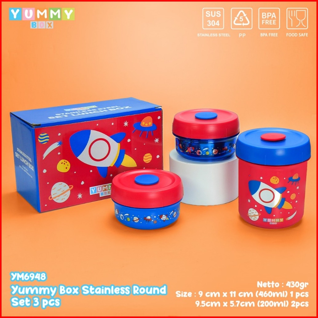 Yummy Box Lunchbox Container 3cps Set Stainlees Steel Kotak Makan Anti Tumpah Ym6948