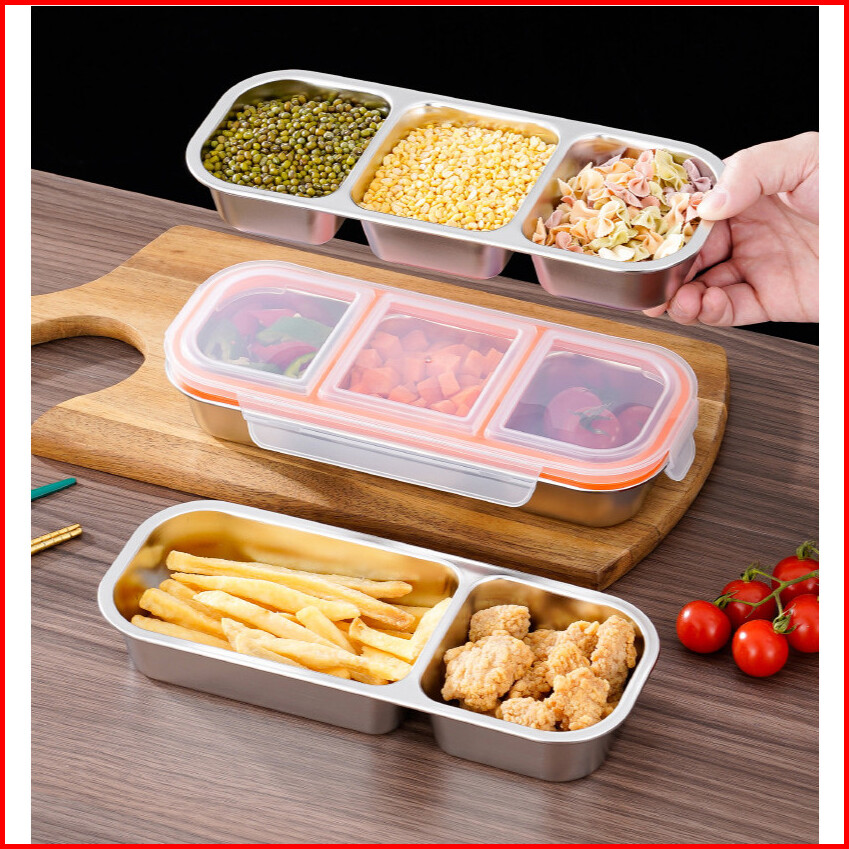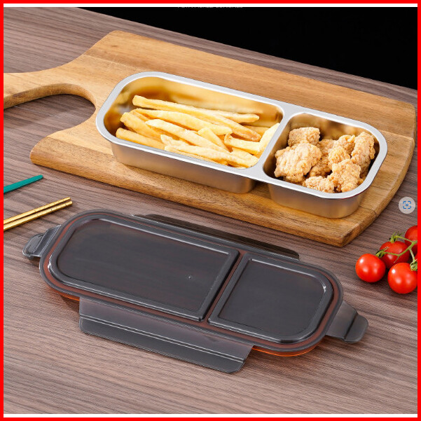 Kotak Makan Stainless Sus304 Tutup Seal Tiap Sekat Tidak Kecampur Anti Tumpah Klip 4 Sisi Lunch Box
