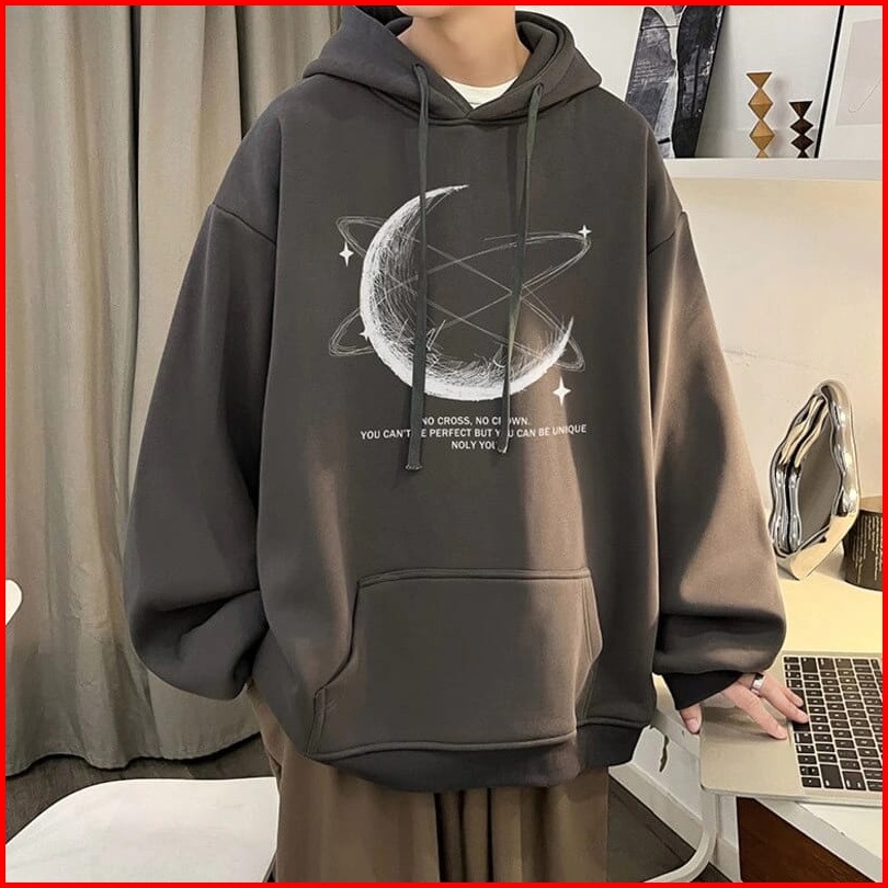 Femes Bulan Sabit Sweater Hoodie Pria Outerwear Fleece Tebal Premium Ootd Casual Daily