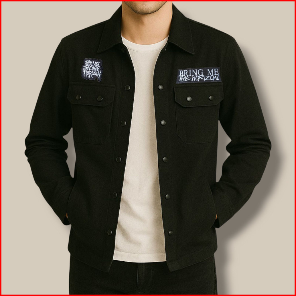 Kemeja Pria Lengan Panjang Workshit Motor Jurusan Kuliah Kerja Gunung Hem Cowok Hitam Emblem Keren