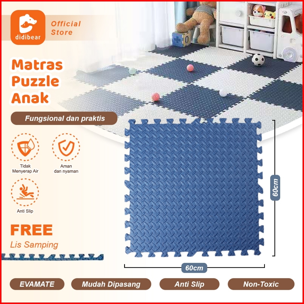 Didibear Matras Puzzle Anak 60x60cm Karpet Bermain Anti-slip Aman Non-toxic Sni Certified Eva