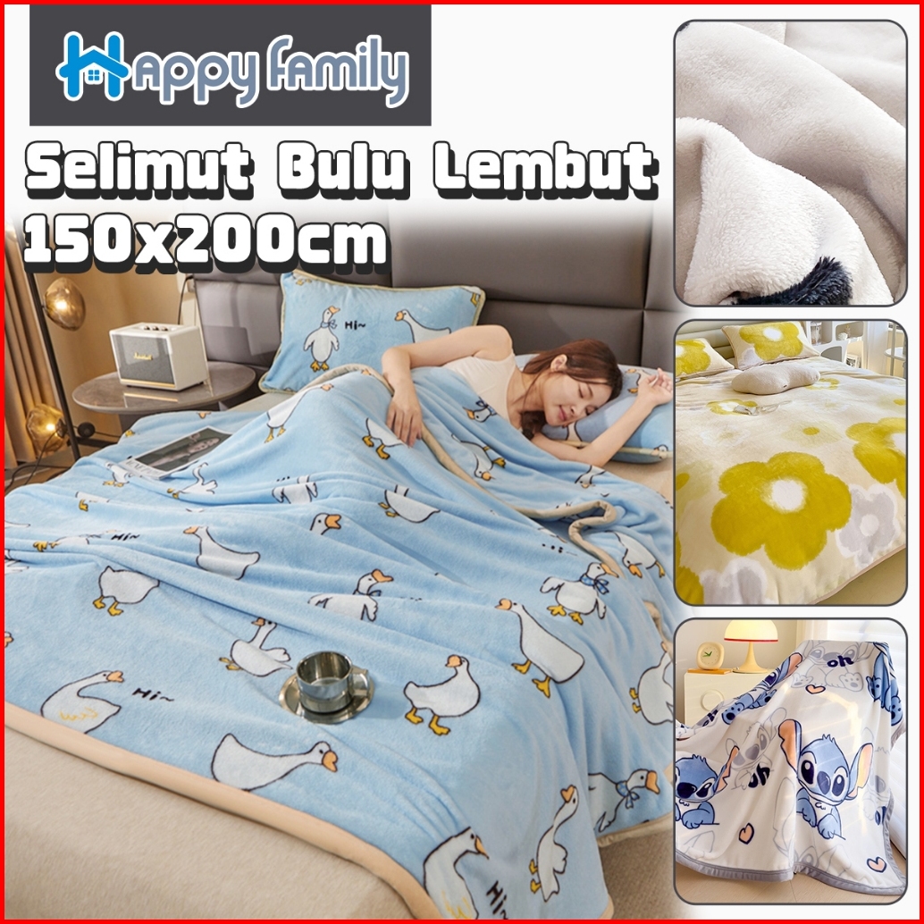 Hf Lokal Selimut Flanel Polyester 150x200cm Bulu Lembut Bahan Premium High Quality