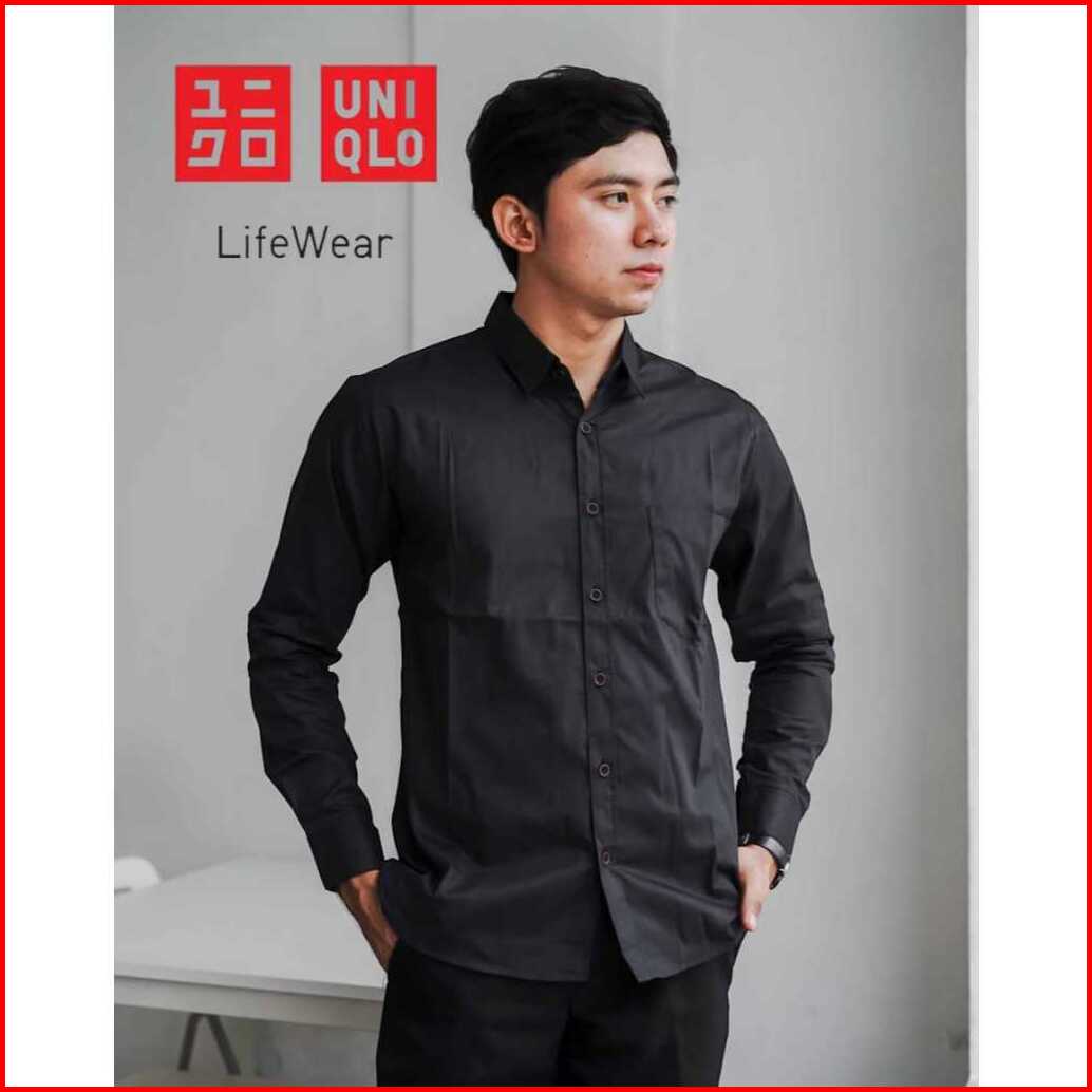 Kemeja Pria Uniqlo Polos Baju Kemeja Lengan Panjang Kemeja Cowok Hitam Kemeja Pria Panjang Polos