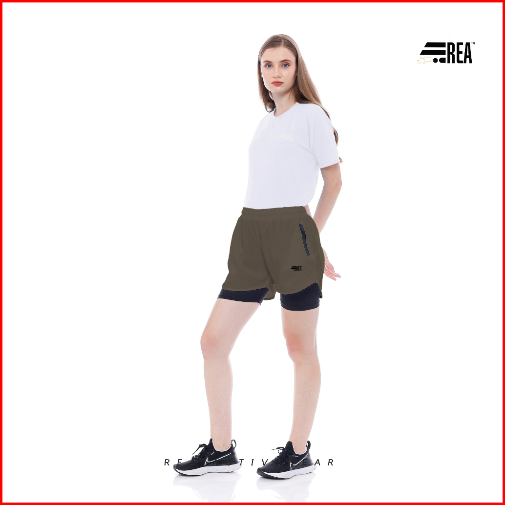 Rea Activewear - Short Running Pants 2in1 Olive Edition