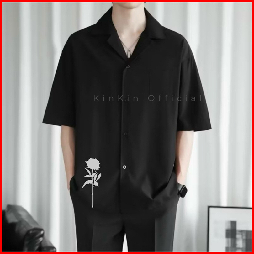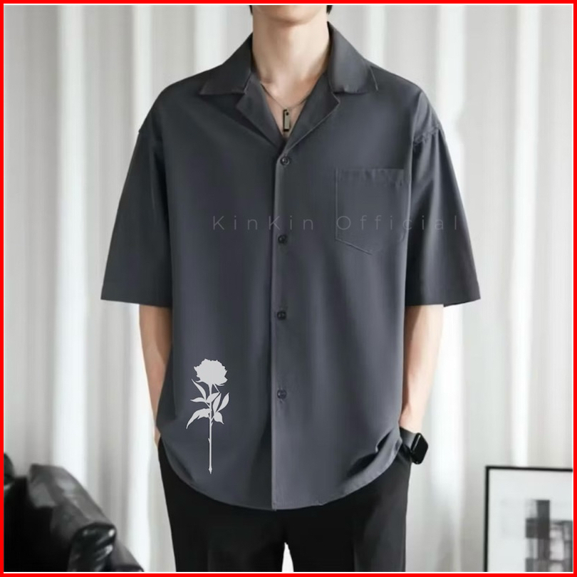 Kemeja Pria Lengan Pendek Kemeja Vintage Pria White Rose Kemeja Polos Pria Abu-abu Hitam Kemeja Pria Pantai Hem