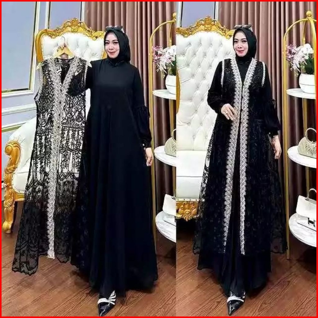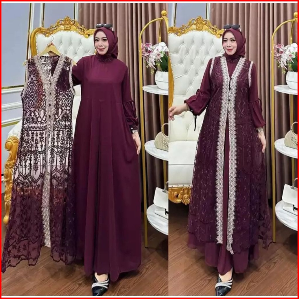 Gamis Brokat Naura Dress 2in1 Busui Wudhu Friendly Inner Ceruty Adem Outer Brokat Premium Elleova