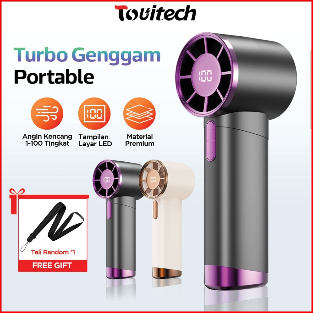 Kipas Angin Portable Turbo High Speed Led Digital Mini Fan Tangan Genggam Usb 100gear Mf06
