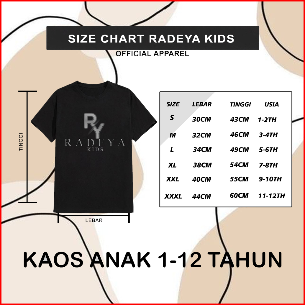 Radeya Kids Baju Kaos Distro Anak Laki Laki Anak Perempuan Umur 1-12 Tahun Bahan Cotton Combet30s Kaos Anak Baju Kaos An