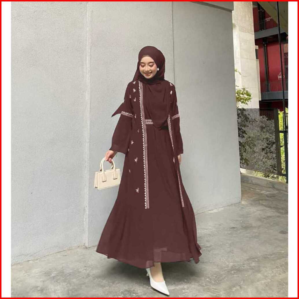 Gamis Abaya Bordir Premium Terbaru 2025 Safwa Abaya Ceruty Babydoll Aplikasi Bordir Simple Elegan