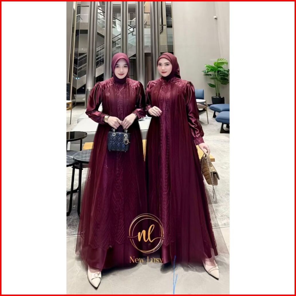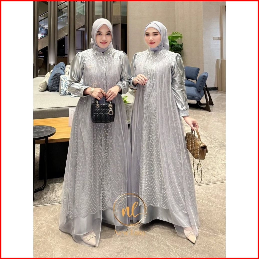 Anggita Dress Silk Roberto Mix Tille Spanggel Premium Gamis Brukat Pesta Terbaru 2025 Mewah Kekinian