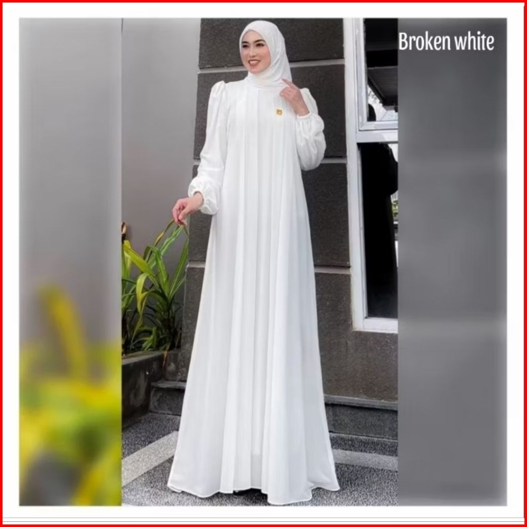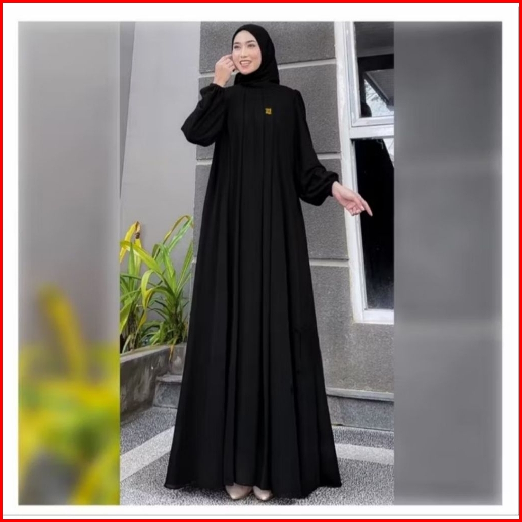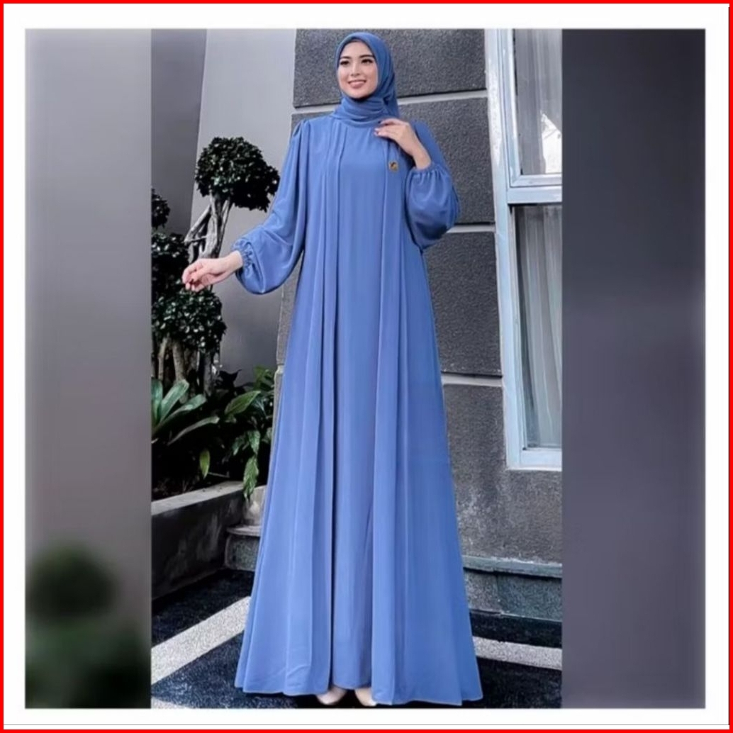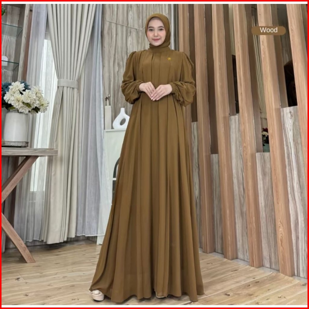 Dress Mahogany Muslim Kondangan Wanita Simple Mewah Elegan Kekinian Bahan Cerutty Babydoll Polos