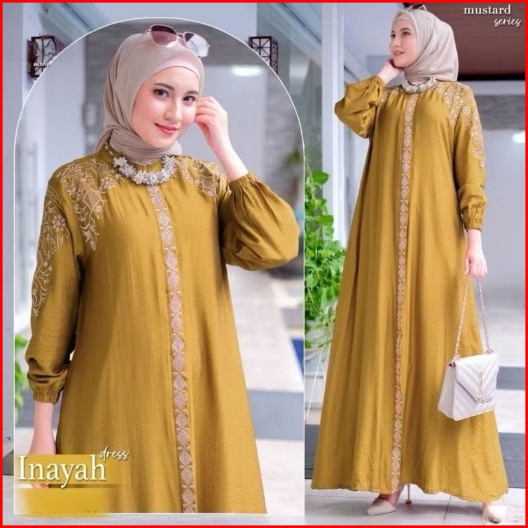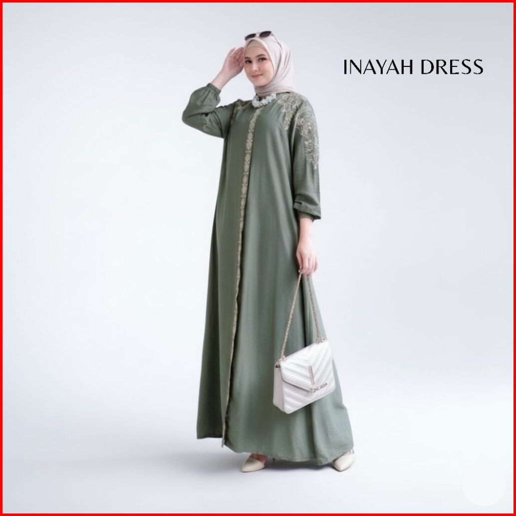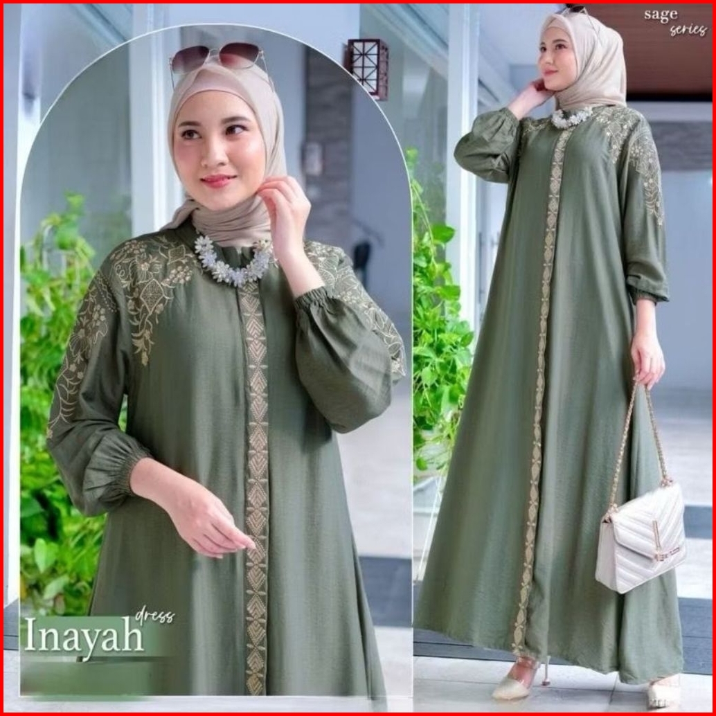 Inayah - Gamis Wanita Polo Linen Aplikasi Bordir Cantik Size Jumbo Busui Friendly