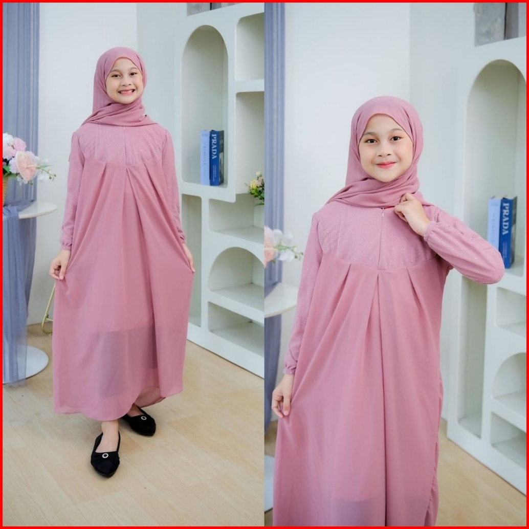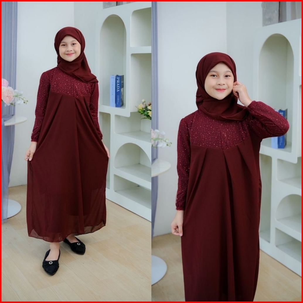 Dress Safira Gamis Safira Kids Wudhu Friendly Mix Brukat Tille Free Hijab Kerudung