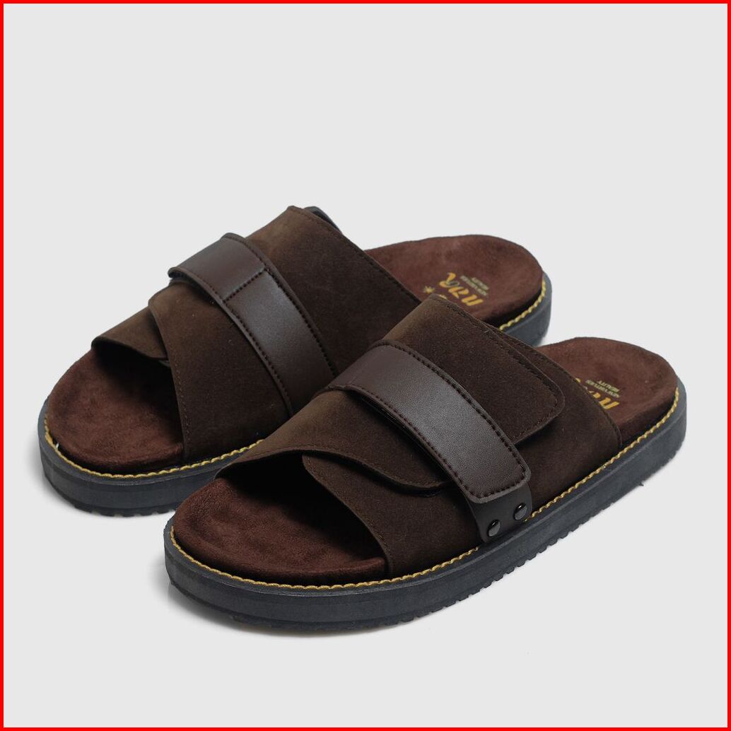 Navara Footwear - Sandal Kulit Casual Pria Full Brown Sandal Slip On Antislip Nvr Debonaire 097