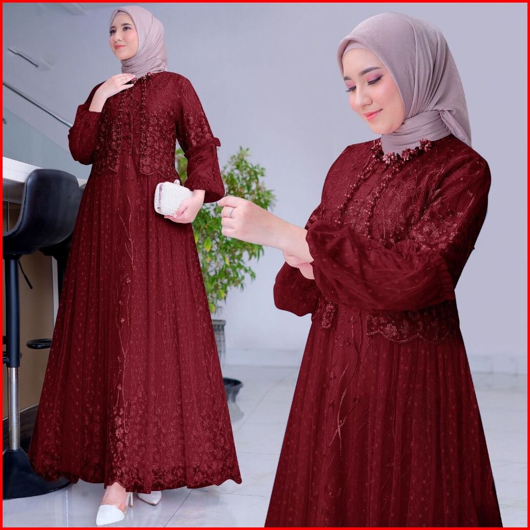 Gamis Model Baru Kondangan Elegan Brukat Mewah Jumbo Simple Rafika