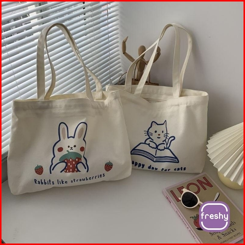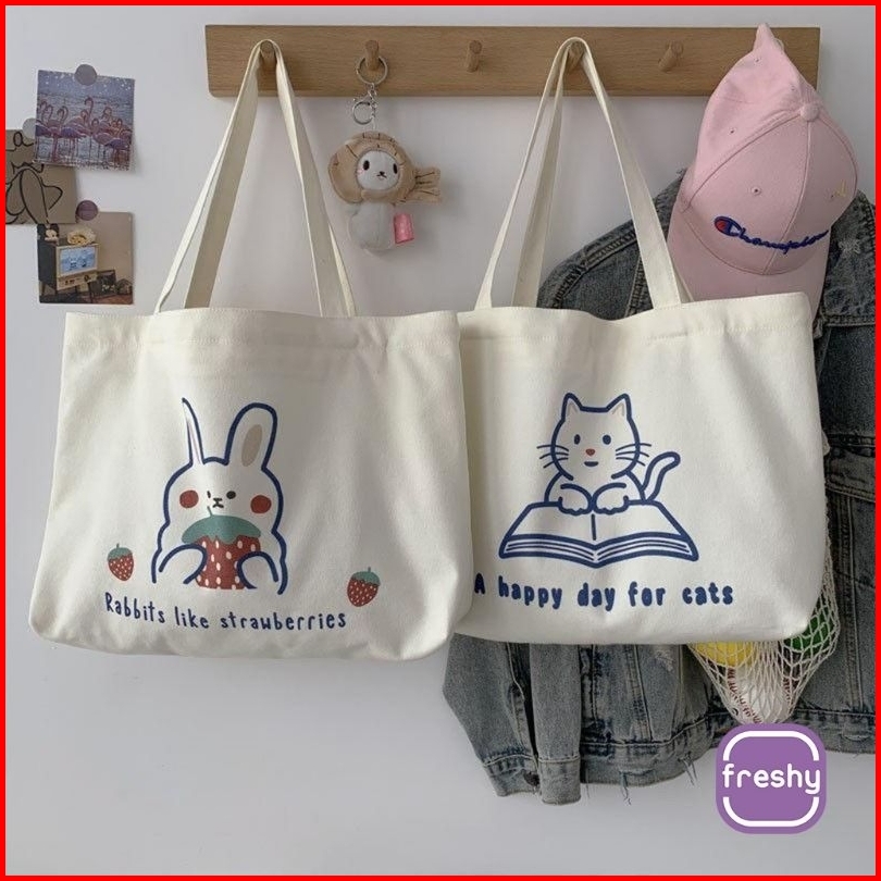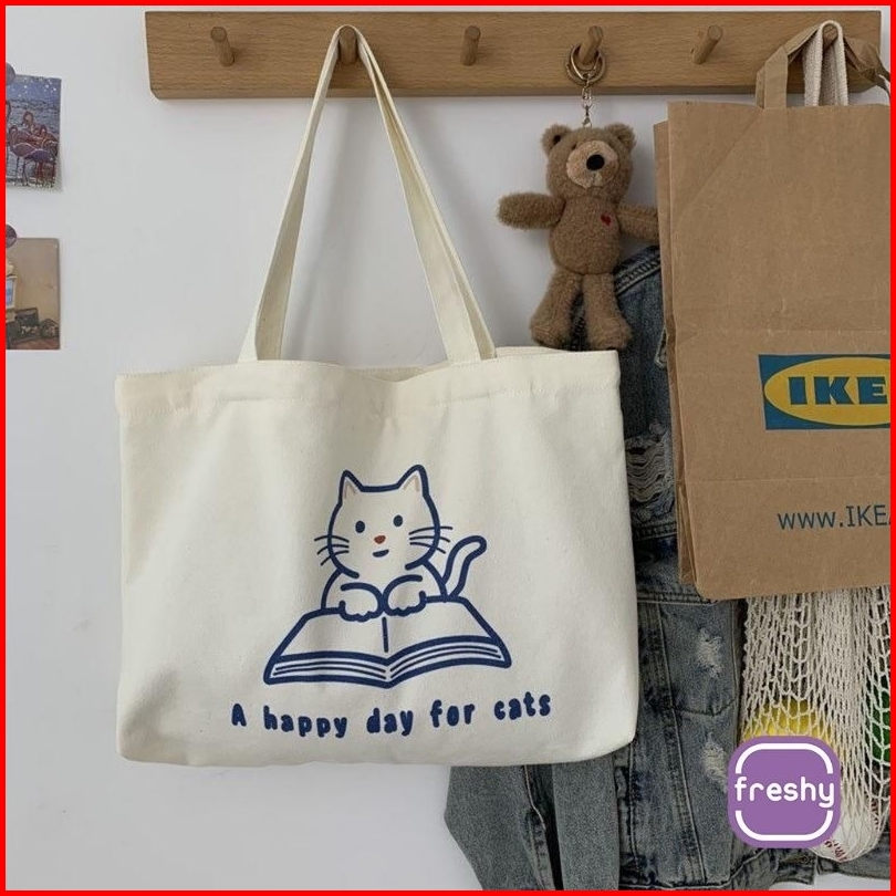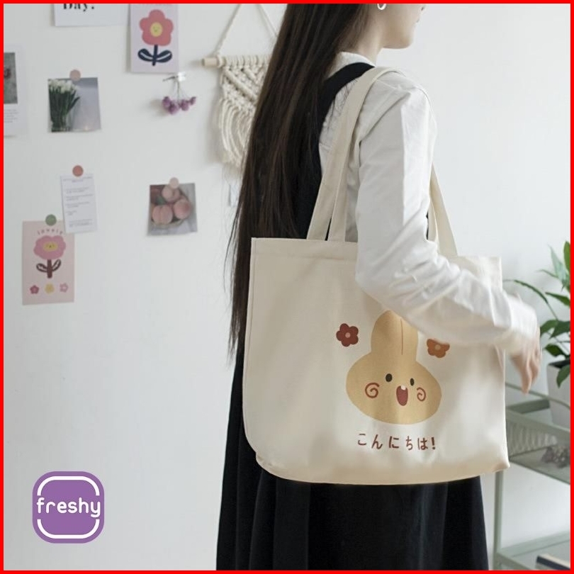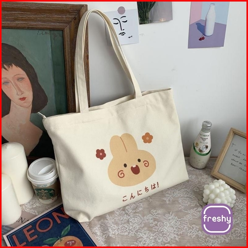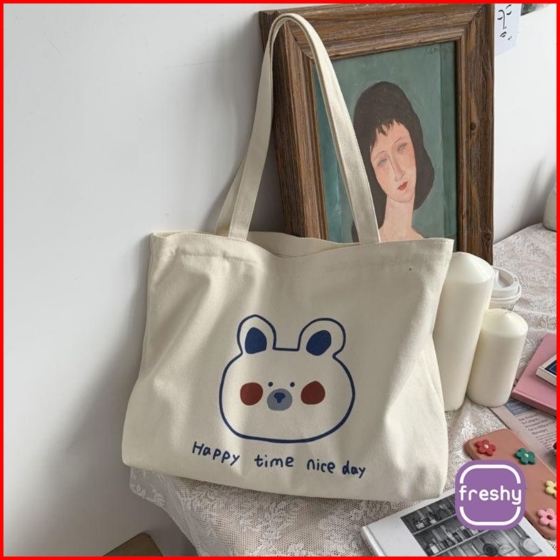 Totebag Happy Time Wanita Uk. 35x30 Pakai Resleting