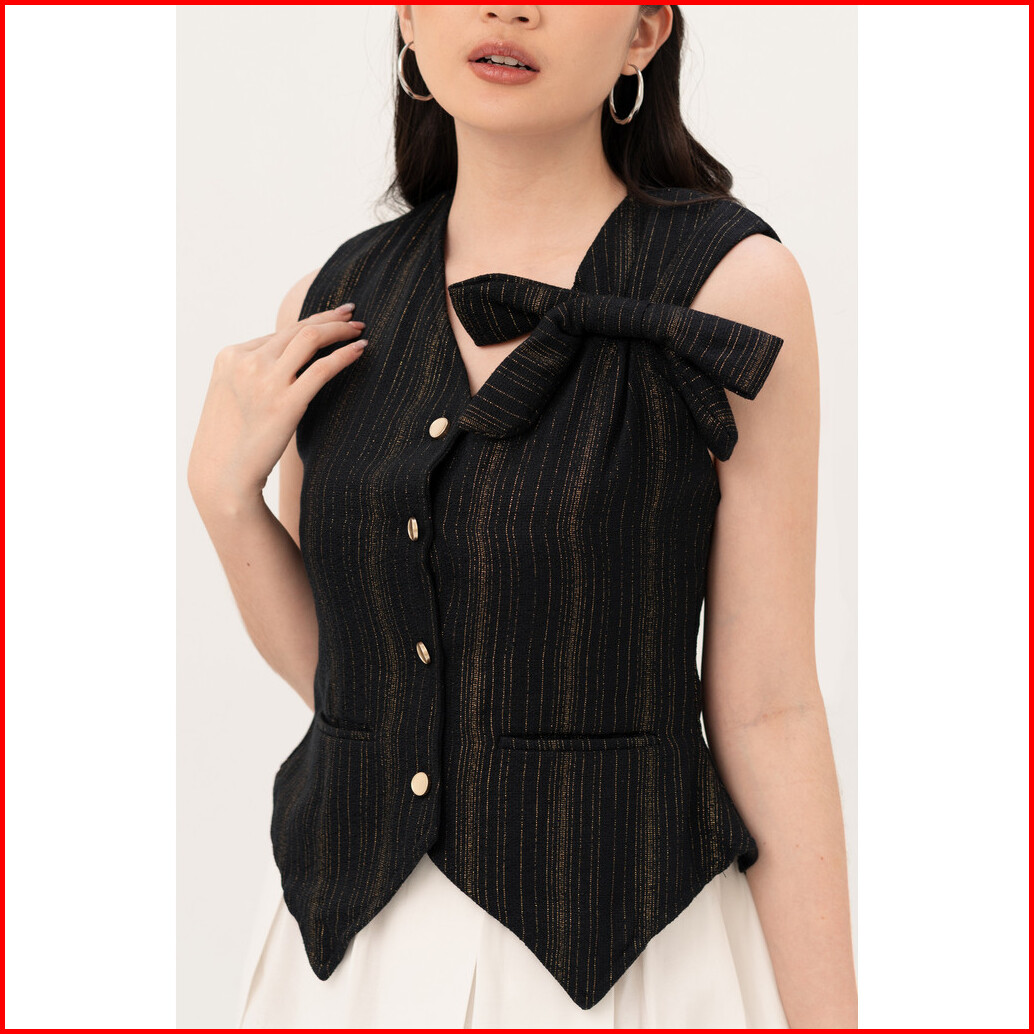 Ves - Misoo Vest In Tweed - Atasan Rompi Tweed Vest With Ribbon Size S-xl