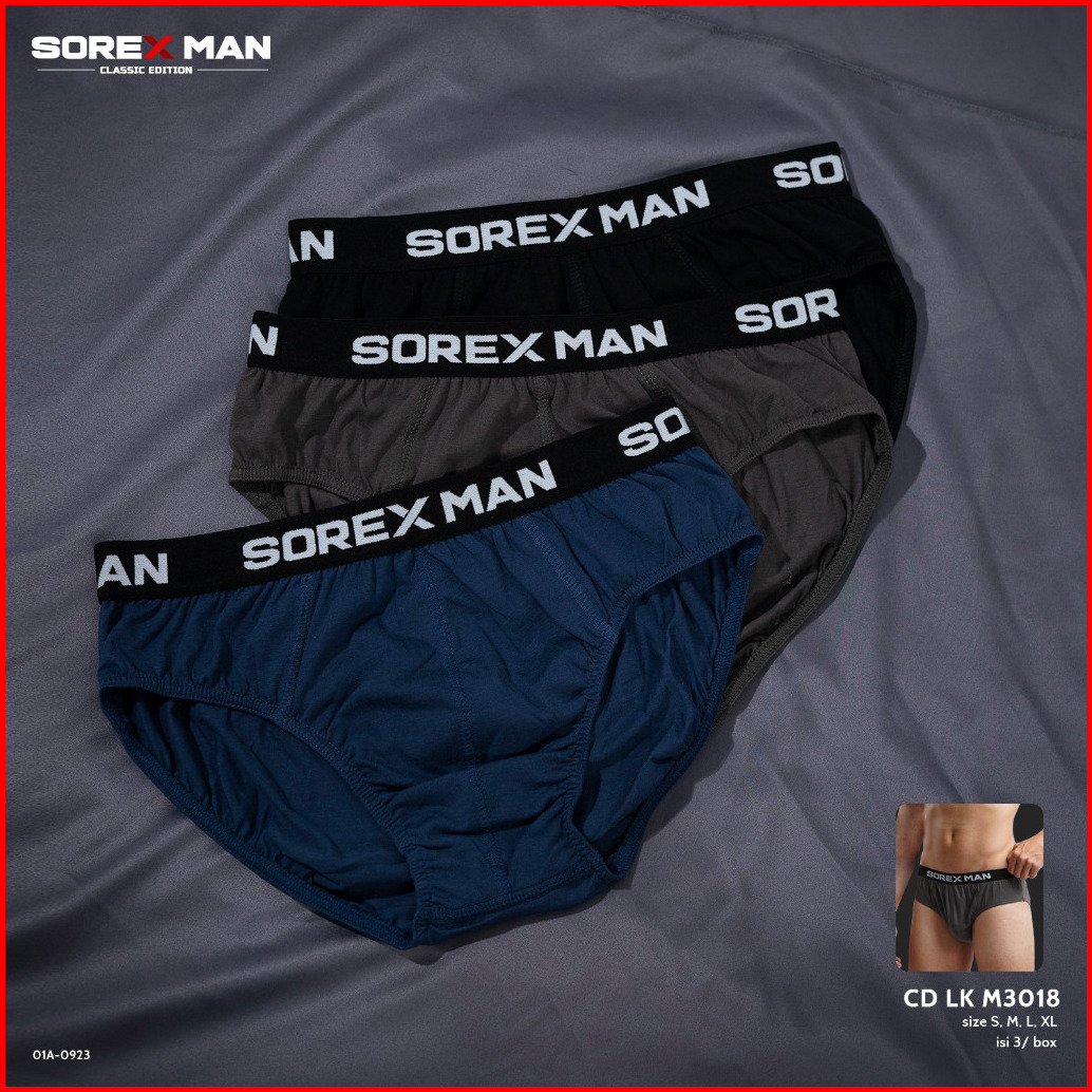 3 Pcs Sorex Man Celana Dalam Segitiga Pria Katun Classic Brief Cd Lk 3018