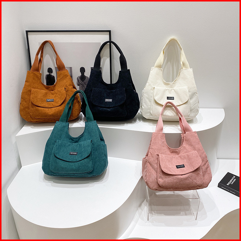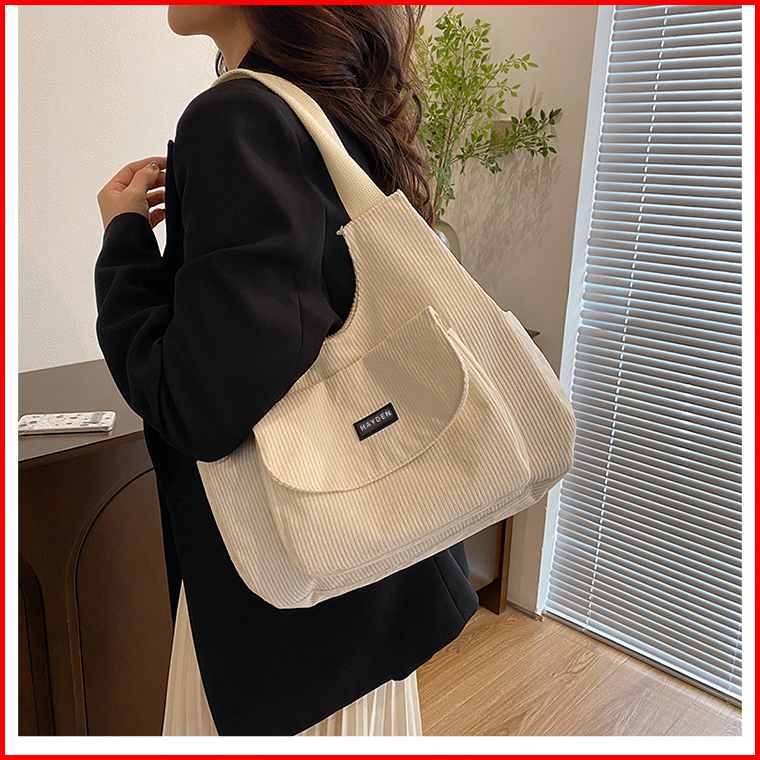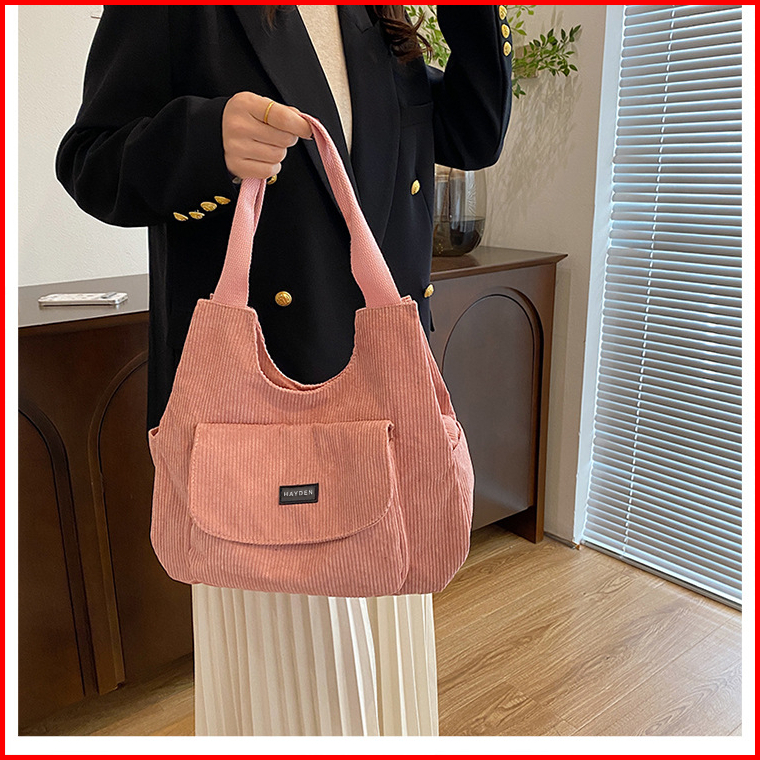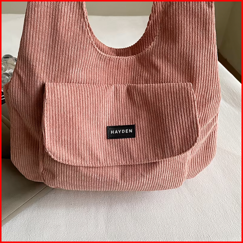 Hayden Rhianon Bag Tote Bag Korduroi Cocok Untuk Kuliah Penutup Resleting Gaya Stylish - Hyb3u