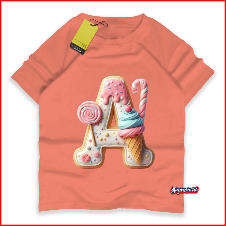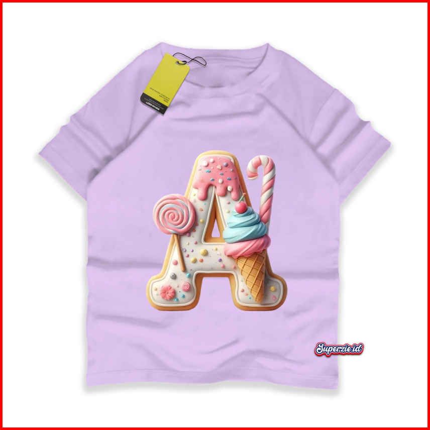 Rgkids Kaos Huruf A Anak Perempuan Alphabet Lolipop Sablon Print Digital