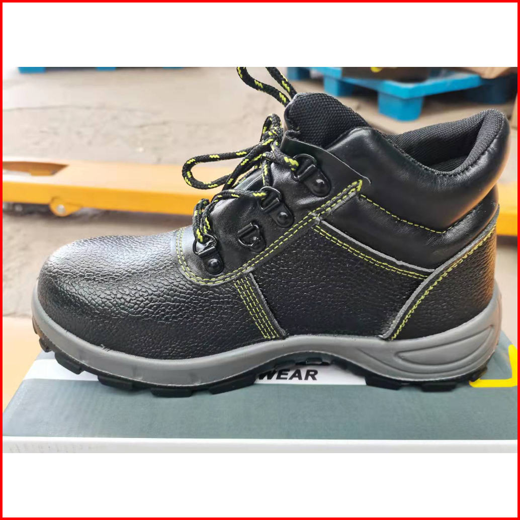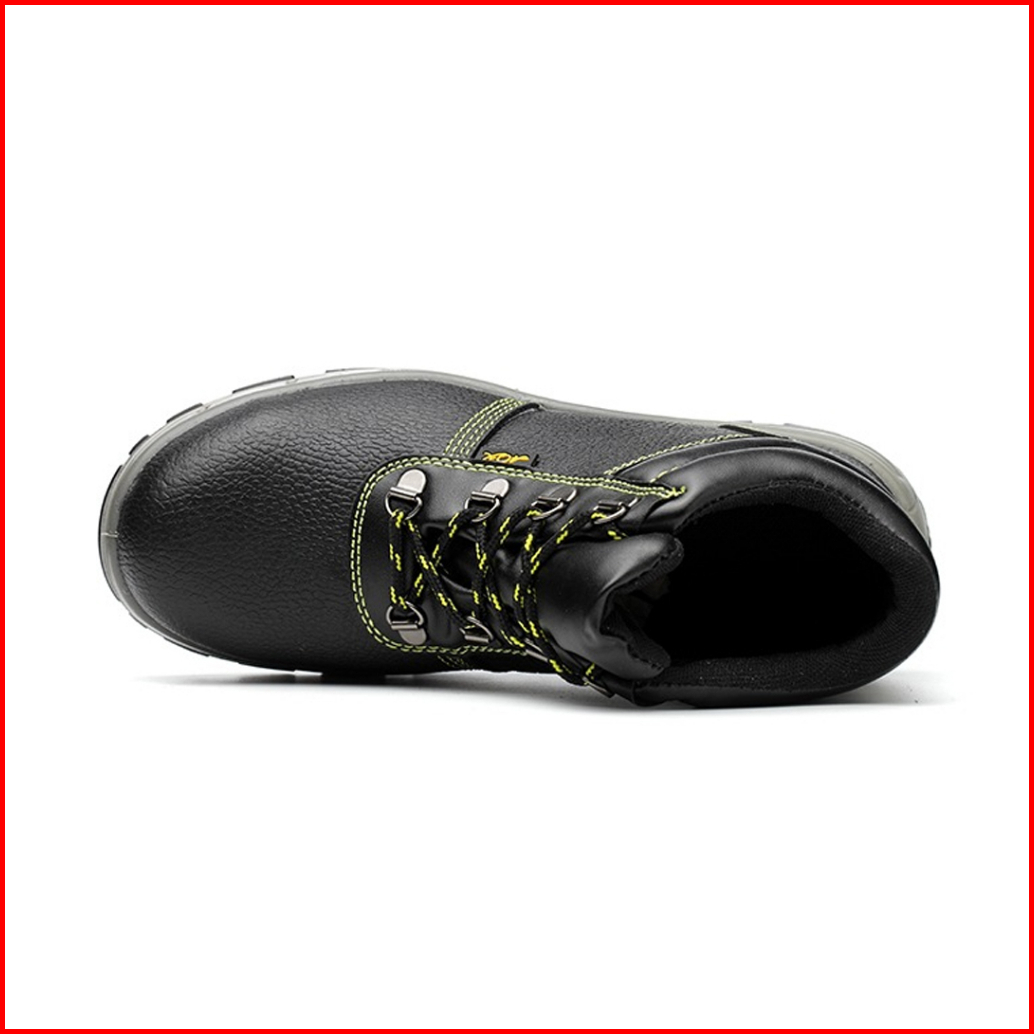 Sepatu Safety Shoes Pria Ujung Besi Middle Cut Hitam List Kuning 1066