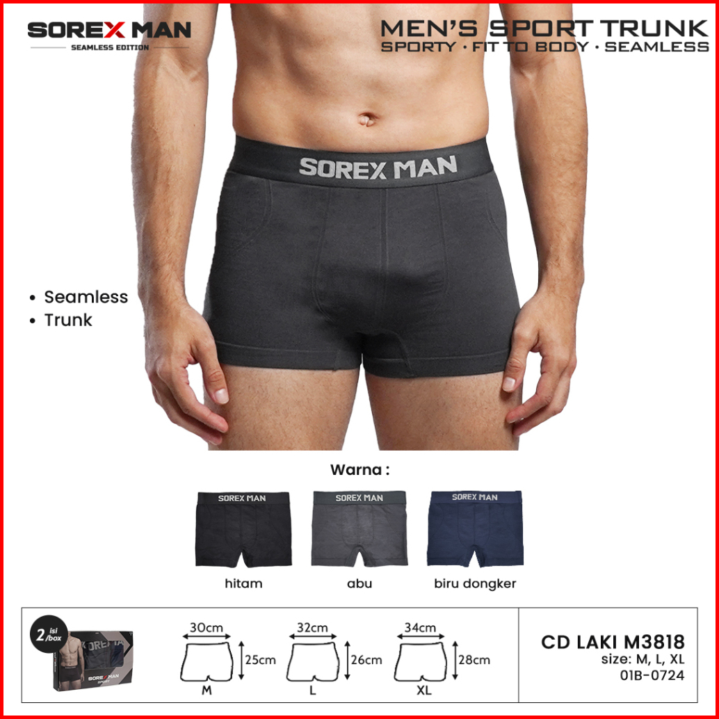 1 Kotak Isi 2 Pcs Sorex Man Trunk Boxer Sport Pria Cd Lk M3818 M 3818
