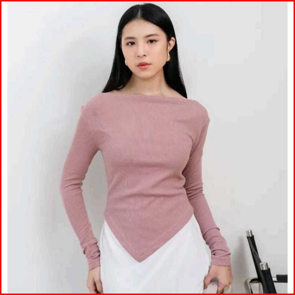 Theresa Sabrina Longsleeve - Atasan Lengan Panjang Vneck Wanita Casual Rib Baju Basic Casual Rib Korean