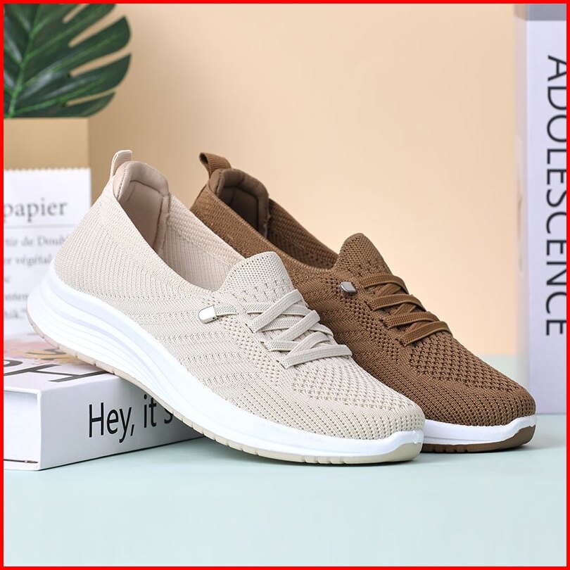 Collin Sepatu Slip On Rajut Sneakers Wanita Dewasa Tali Mati Trendy Sporty Comfy - Cl5126 Alas Putih