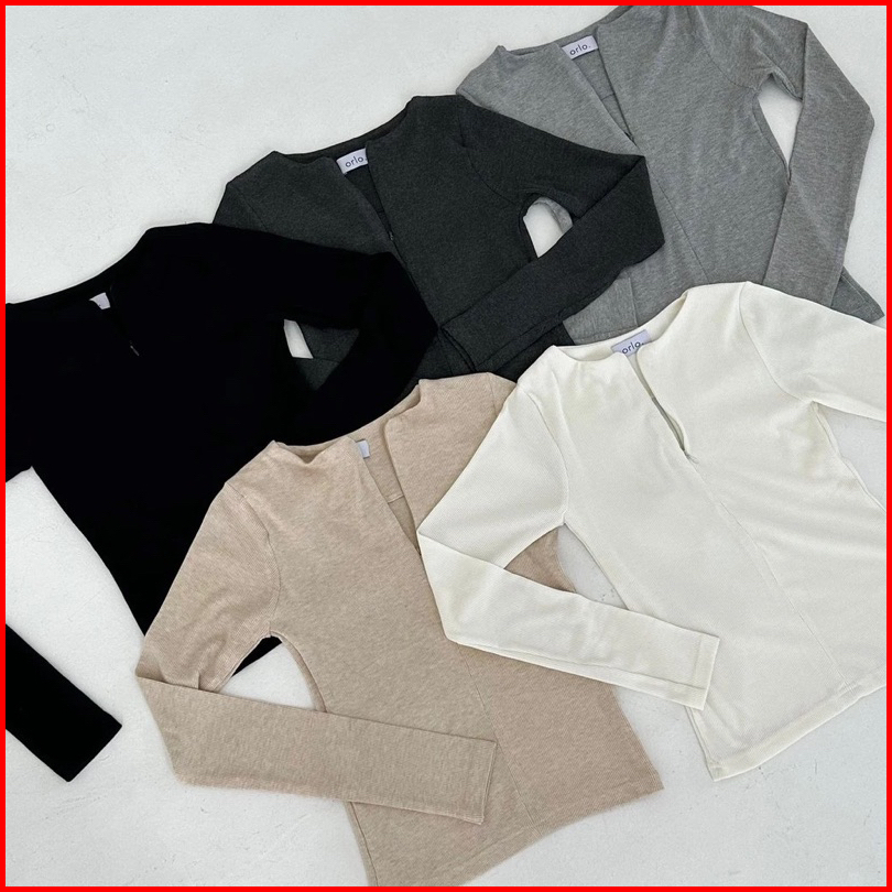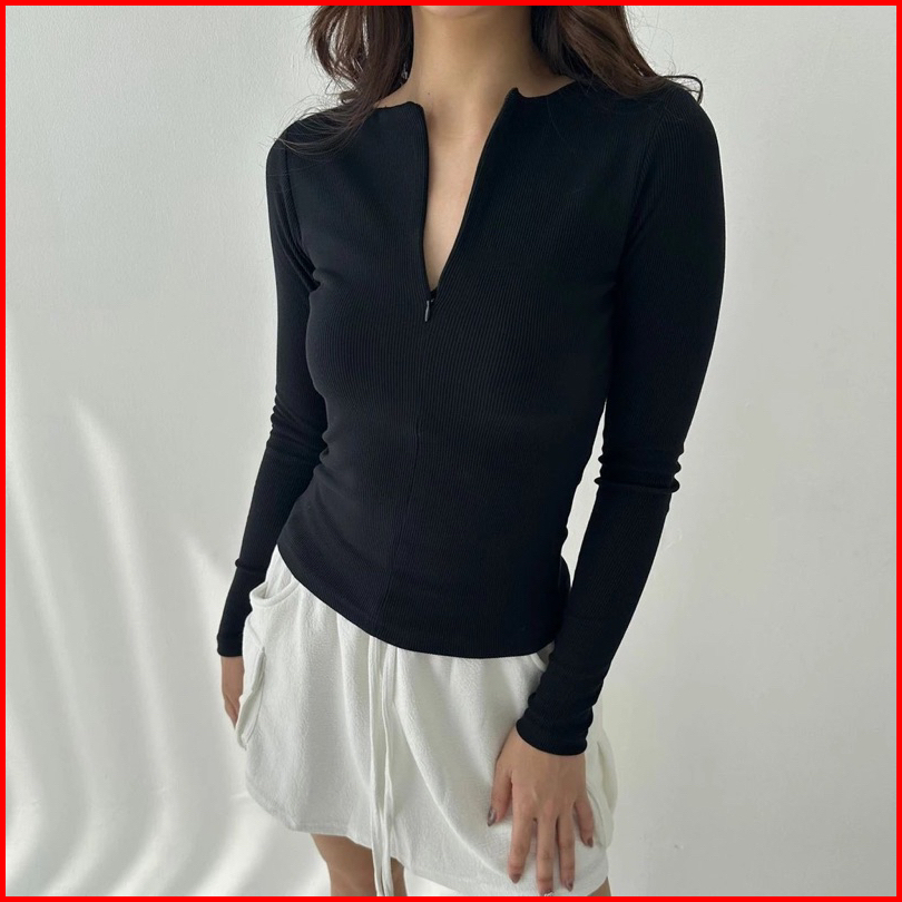 July Top Atasan Knit Wanita Korean Top Baju Knit Wanita Lengan Panjang Resleting Depan