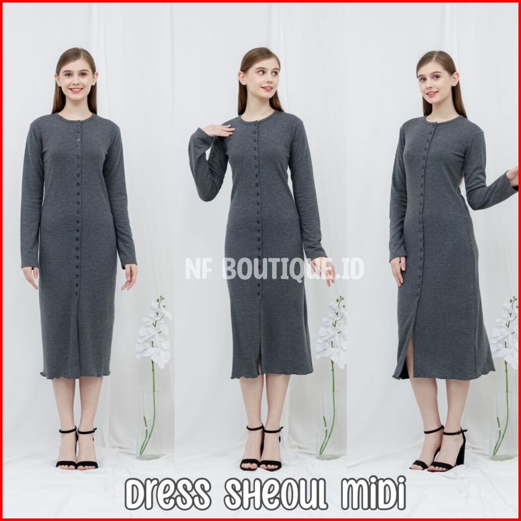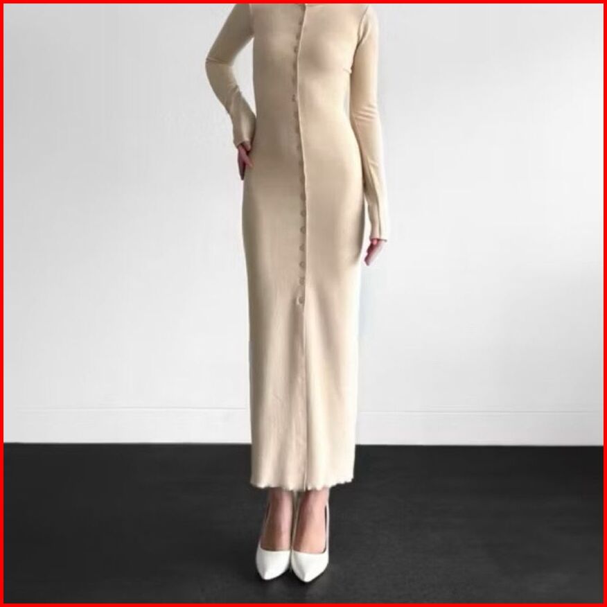 Dress Knit Bodycon Long Dres Kancing Tengah Korean Style Terbaru