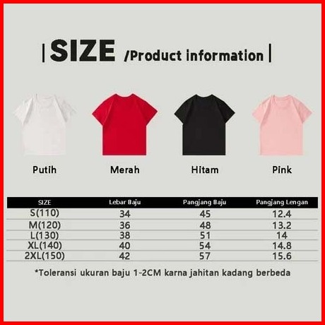 M(3-5 tahun), L(5-7 tahun), XL(7-9 tahun), XXL(9-12 tahun)