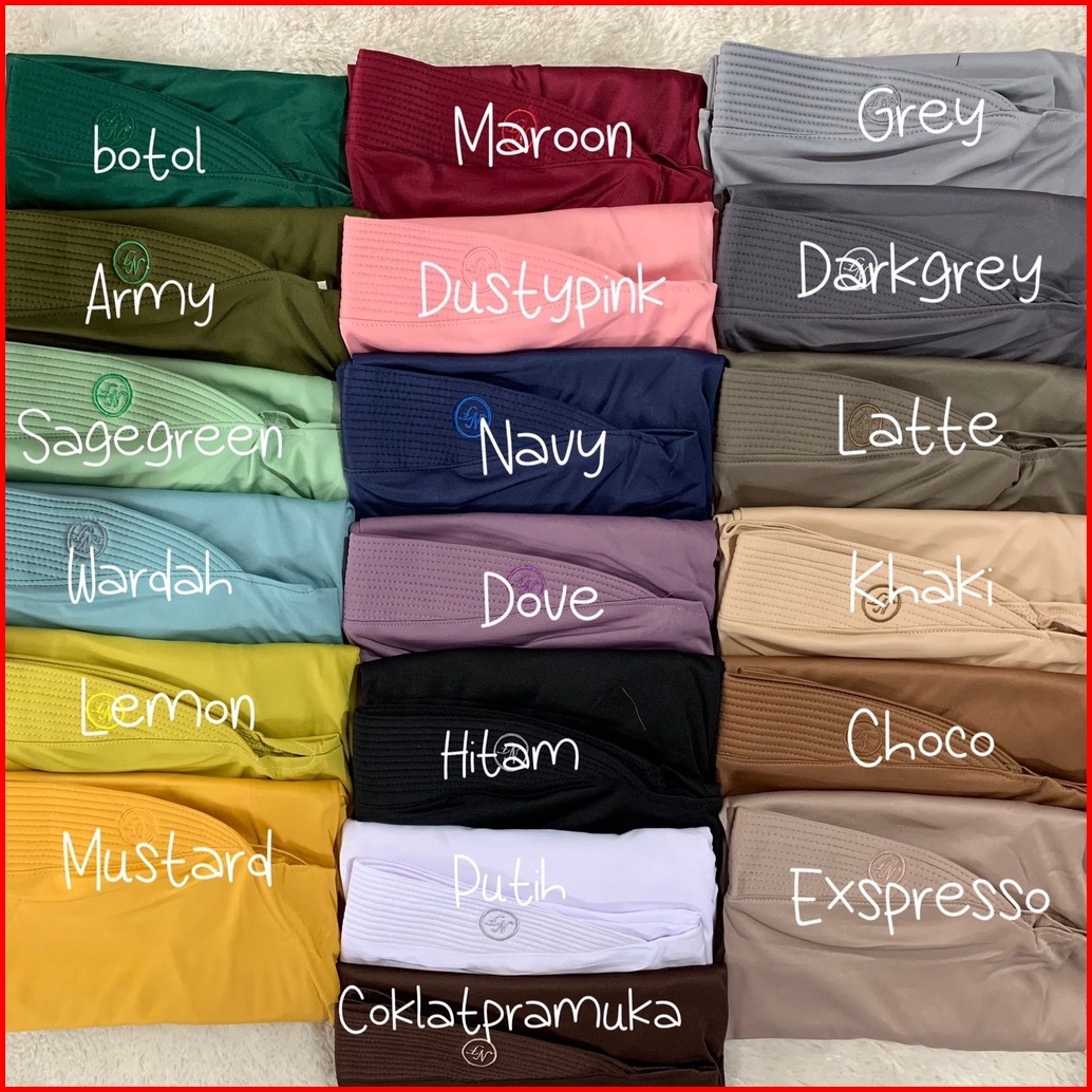 ABU MUDA, Abu Tua, HIJAU ARMY, HIJAU BOTOL, LEMON, Mustard, Dusty Pink, MAROON, Hitam, Putih, NAVY, HIJAU WARDAH, COFFE/COKLAT PRAMUKA, MILO/CHOCO, CREAM/KHAKI, EXPRESO/COKSU, Lavender, LATTE, SAGE GREEN