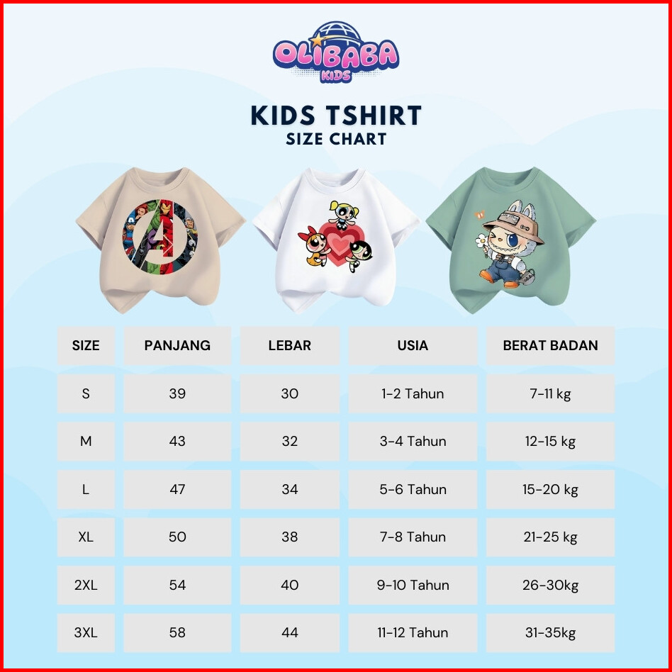Olibaba - Kaos Anak Premium 1-12 Tahun 100 Katun Tebal 24s Baju Anak Laki Laki Perempuan - A37