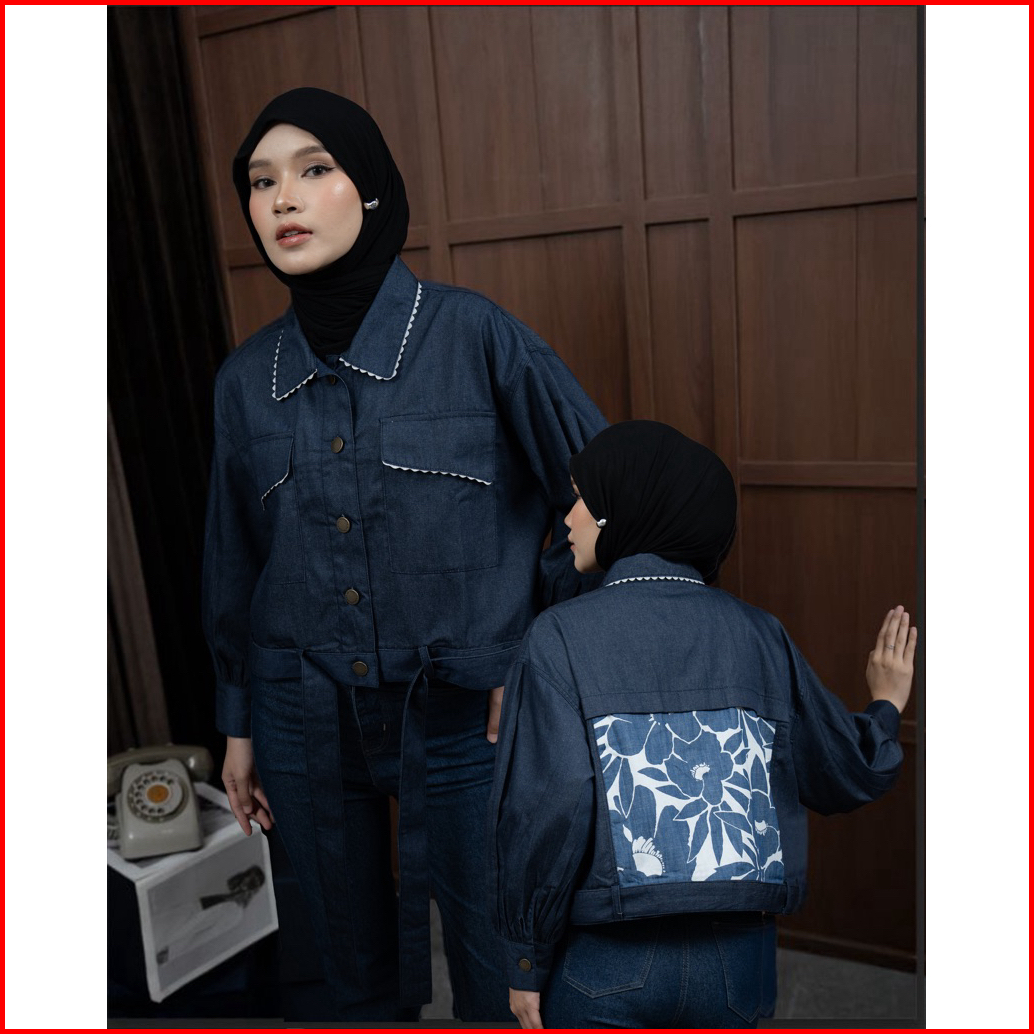 Mayoutfit Stoney Outer Jaket Denim Crop Outer Wanita Kombi Motif Floral