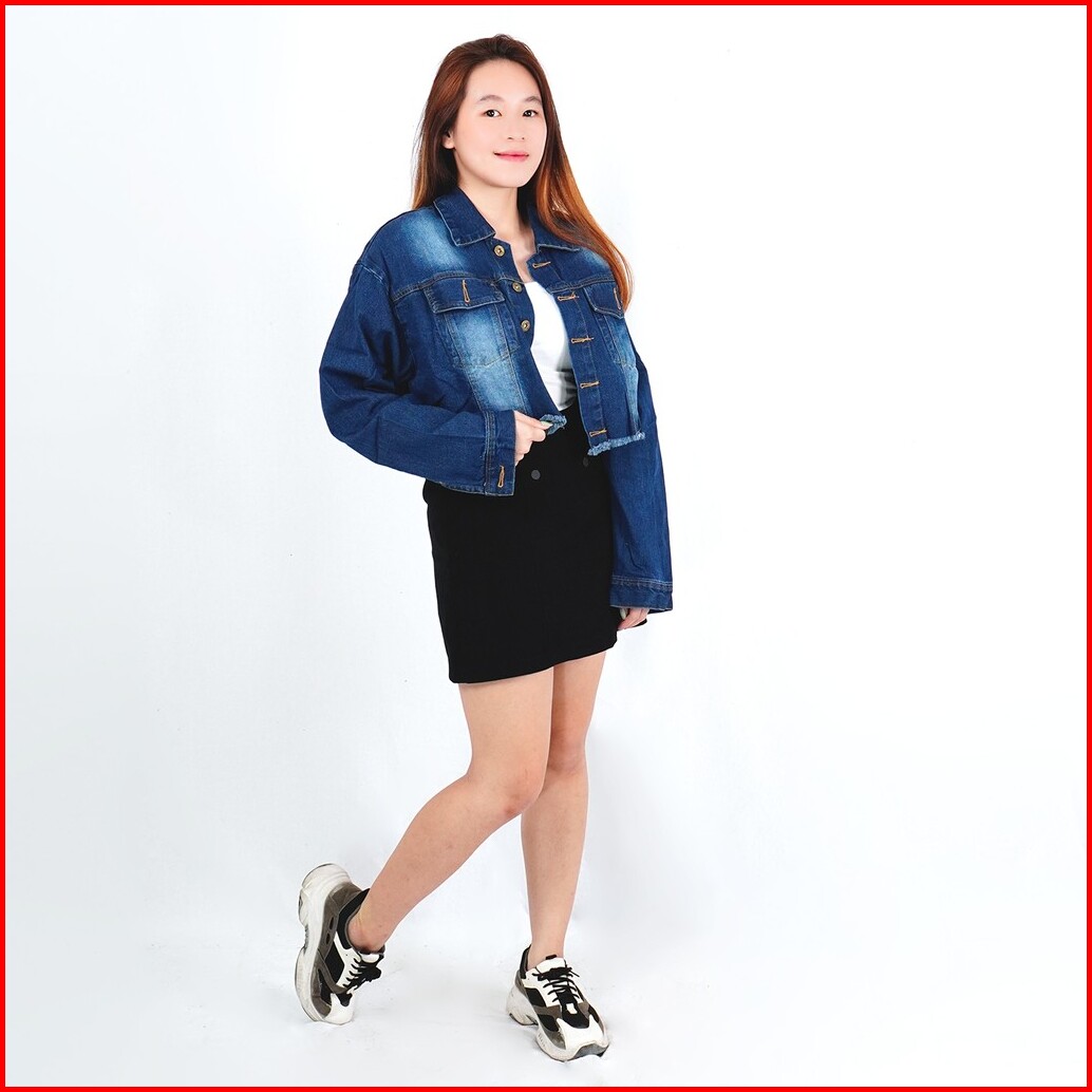 Okechuku Valery Crop Jaket Jeans Wanita Denim Jaket Wanita Ripped Promo Model Terbaru