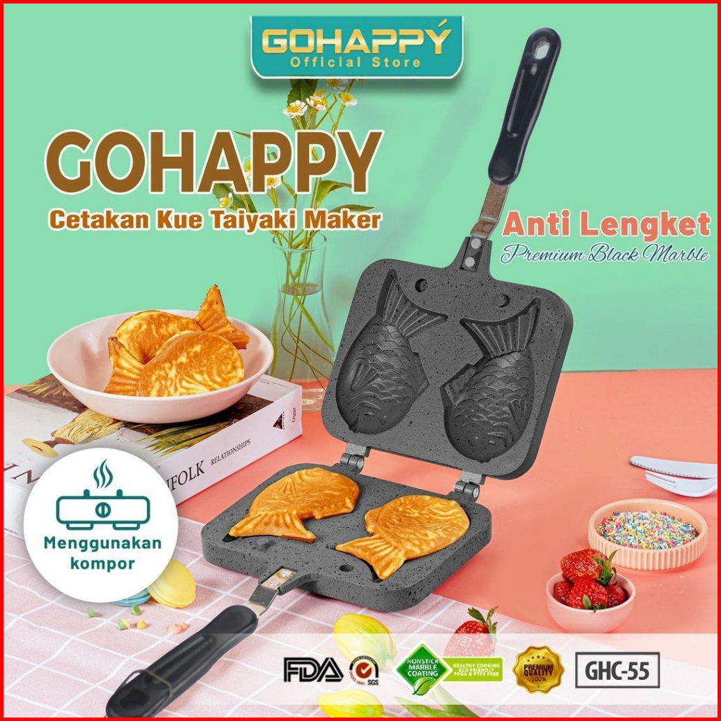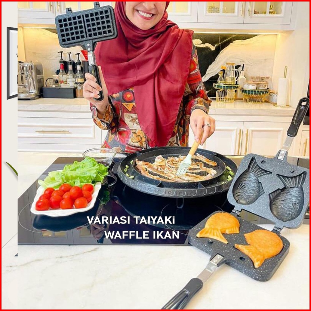 Cetakan Taiyaki Wafel Maker Teflon Marble Cetakan Kue Dua Ikan Teflon Anti Lengket Waffle Bungeoppang Pan Japan