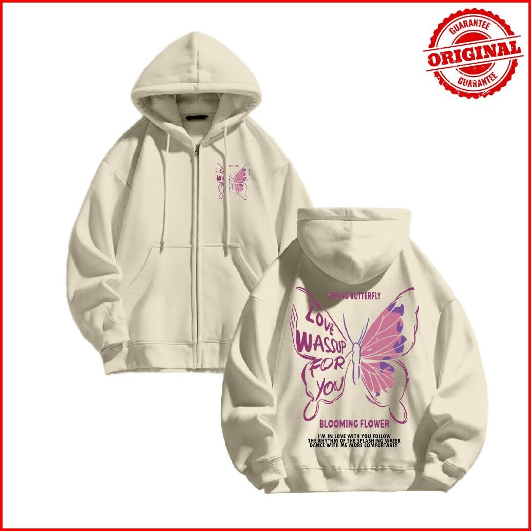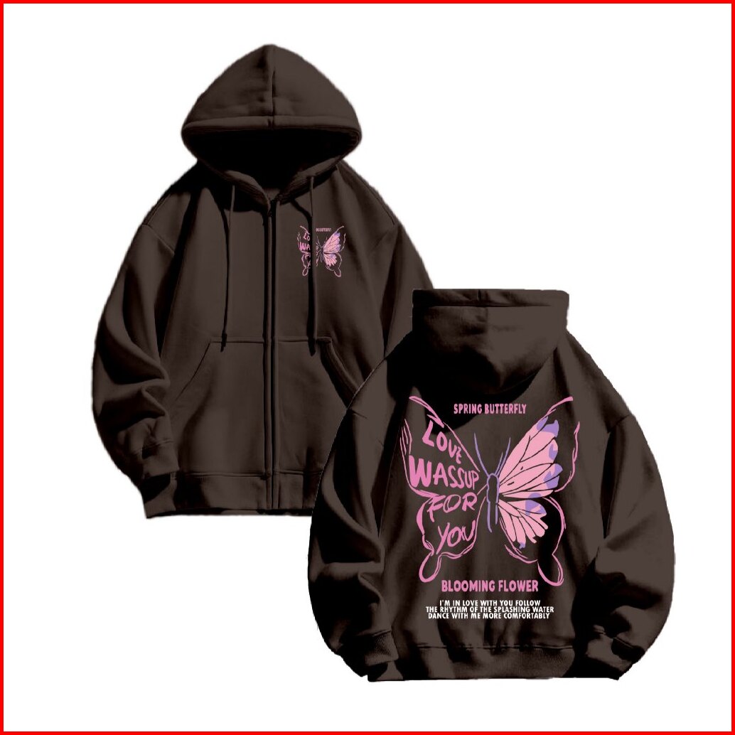 Hoodie Jaket Zipper Jyb Oversize Spring Butterfly Sablon Size M-xxl Pria Wanita