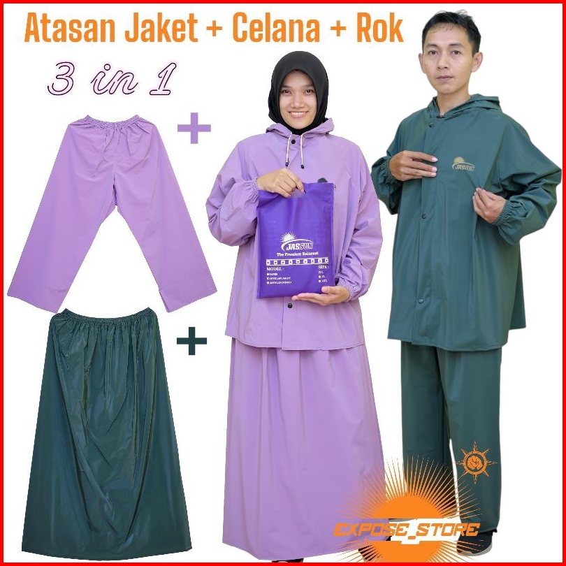 Jas Hujan Setelan Atasan Baju Celana Rok Bahan Pvc Waterproof Kuat Lentur Dan Anti Rembes